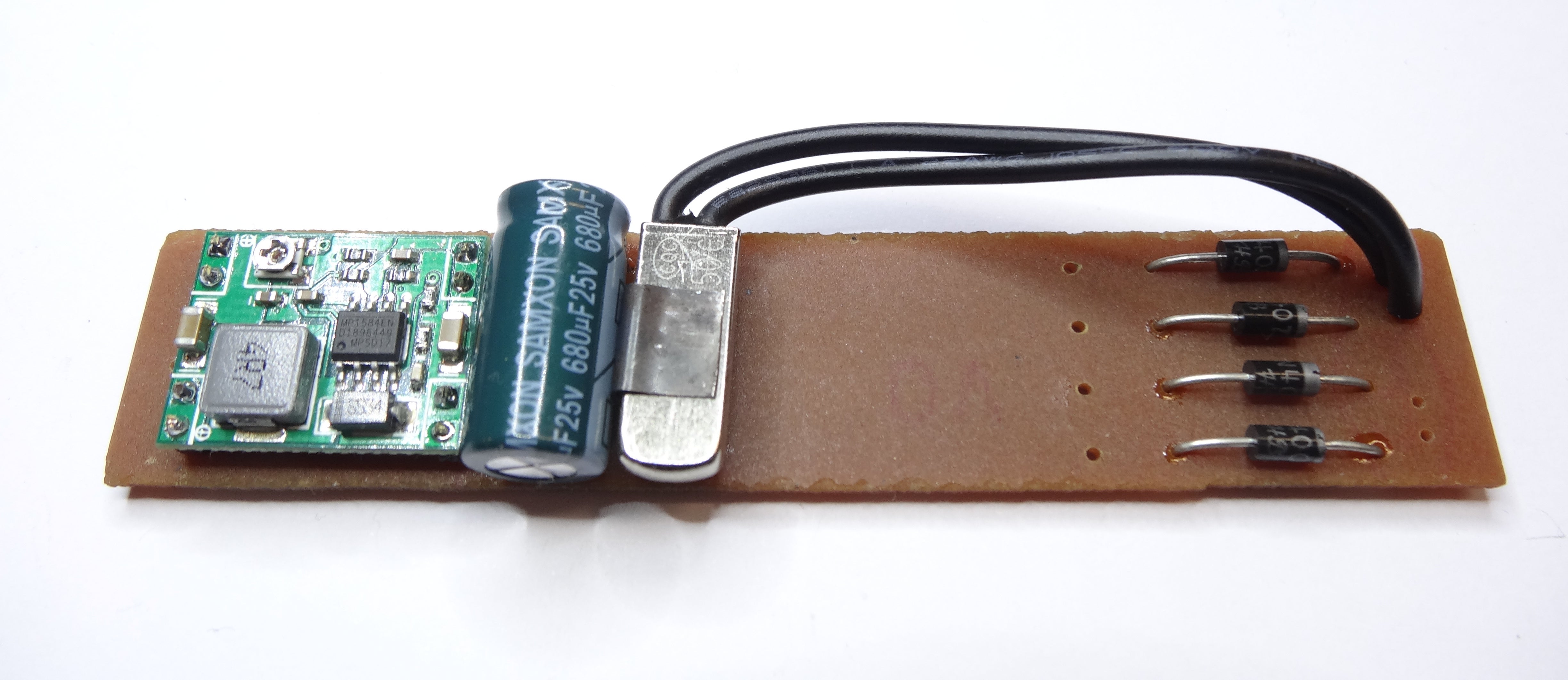 Now the safety switch of the circuit, which prevent an over voltage damage of the stepdown module and the charged devices, will be installed.