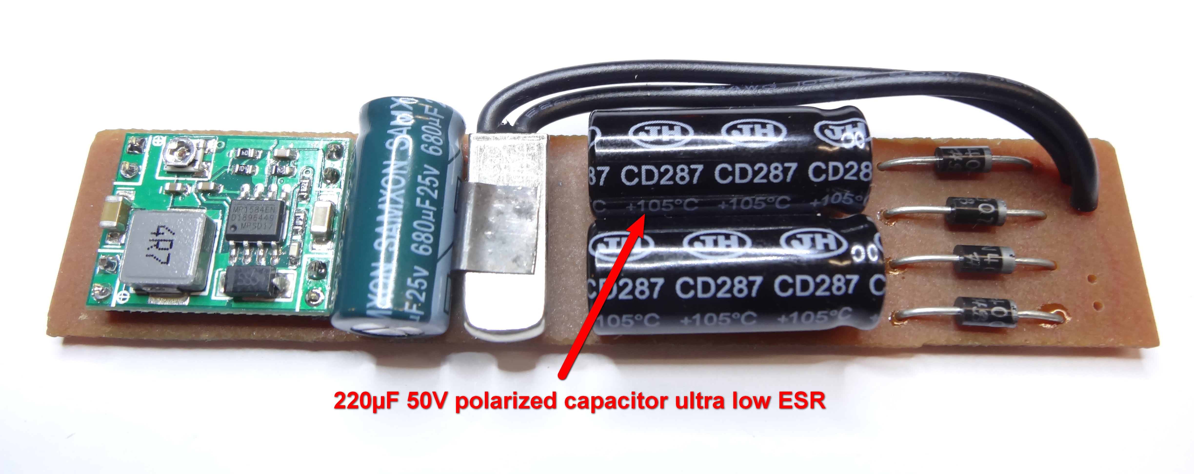 | 2x | 220µF 50V polarized capacitor ultra low ESR | Conrad | 0,7€ |