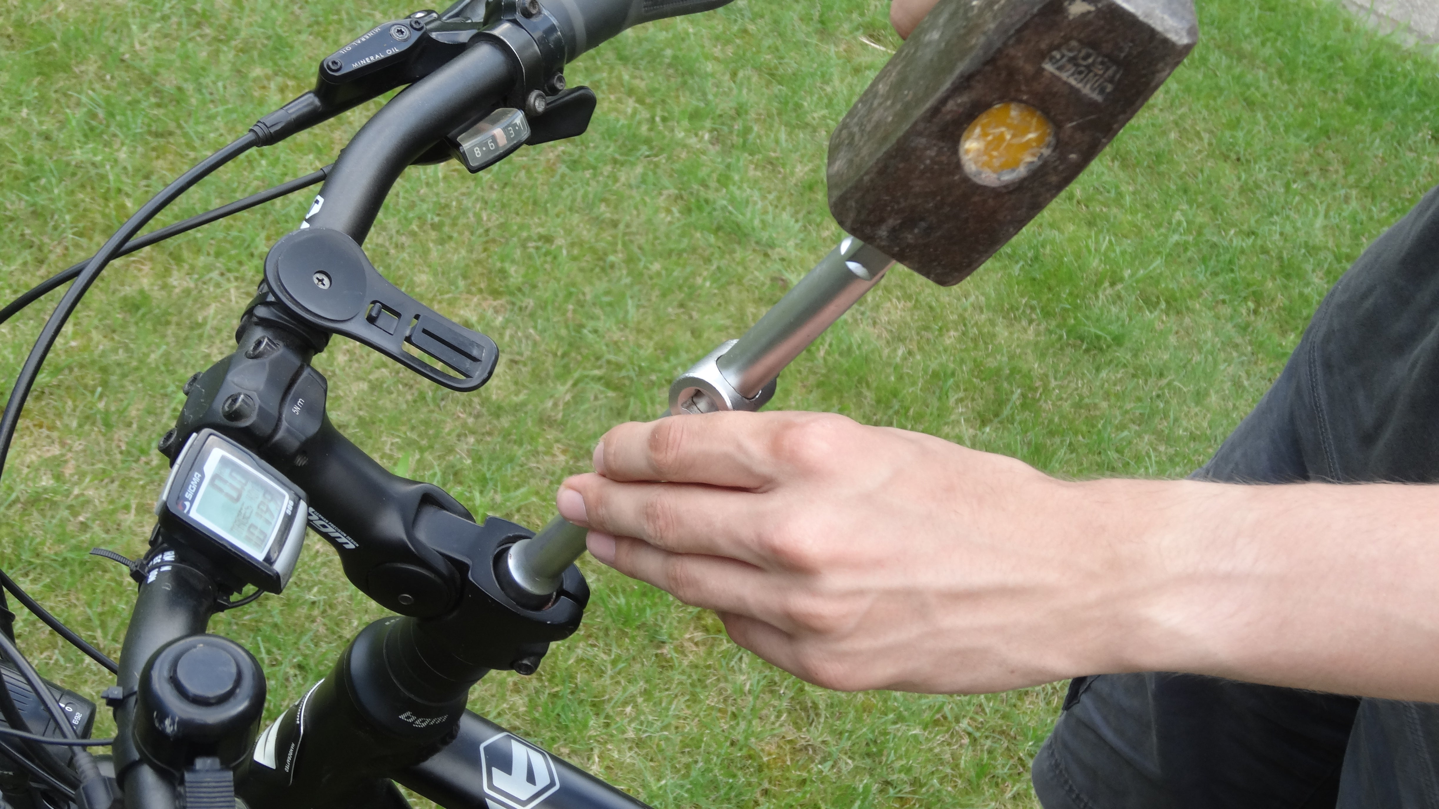 As you can see on this picture, the Ahead-ring is screwed to this snap ring. To make some space for the PCB, you have to push the snap ring deeper inside the steering rod.