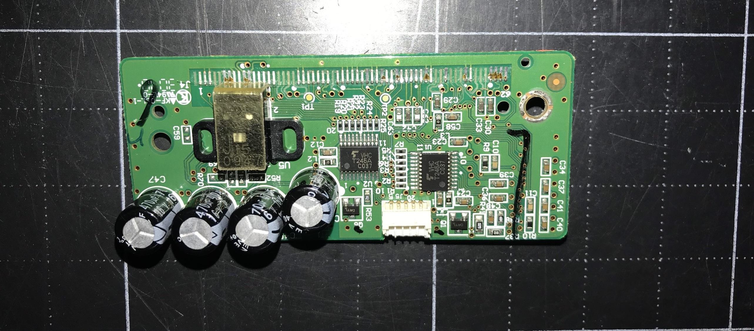 There is 4 pins - header on the PCB control board and I easily found the encoder pinout diagram on this header. I kept this original PCB control circuit, just removed 4 pins - header and replaced by 4 cables.