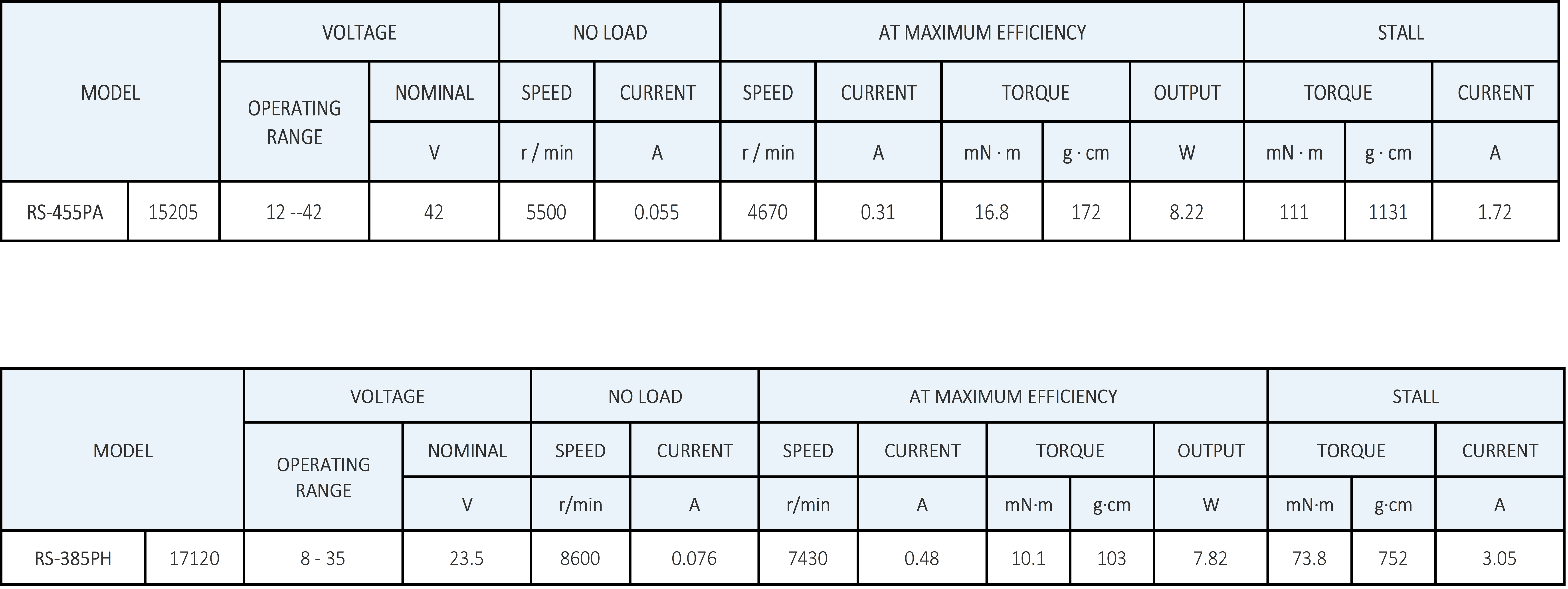 - X axis DC motor: RS-455PA-17150