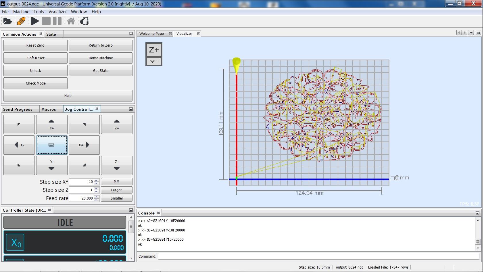 - Click Send and CNC plotter will perform drawing picture following the G-code.