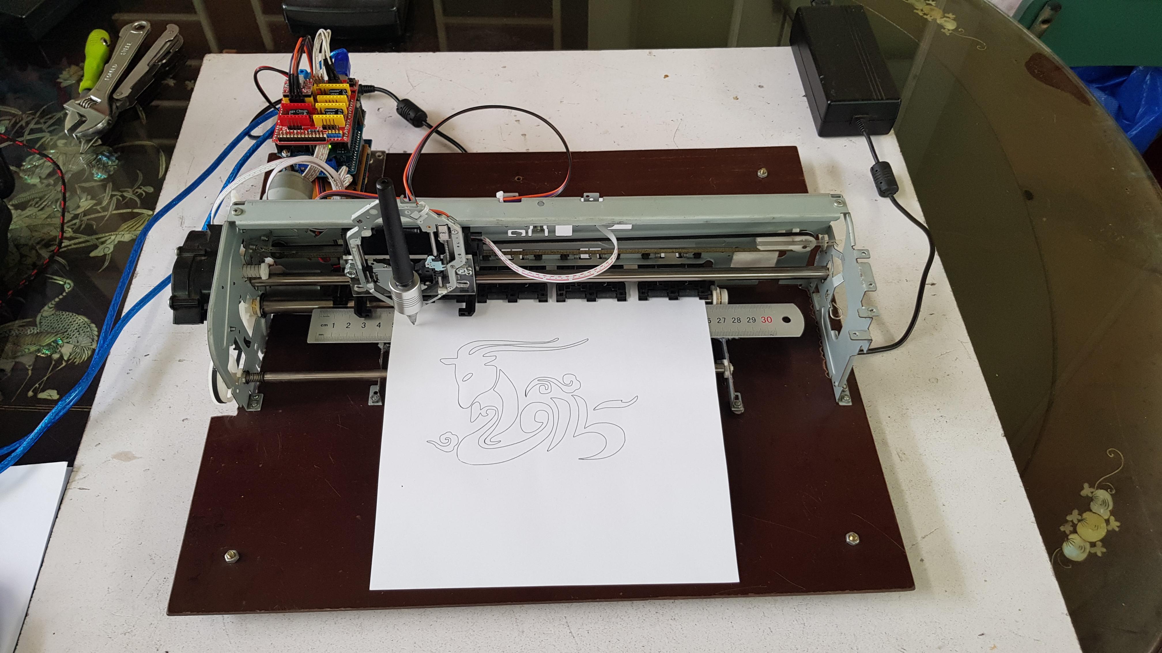 You can see some pictures of this project. My 3 axis CNC plotter works pretty good but it need to be more fine-tuned and improvement.