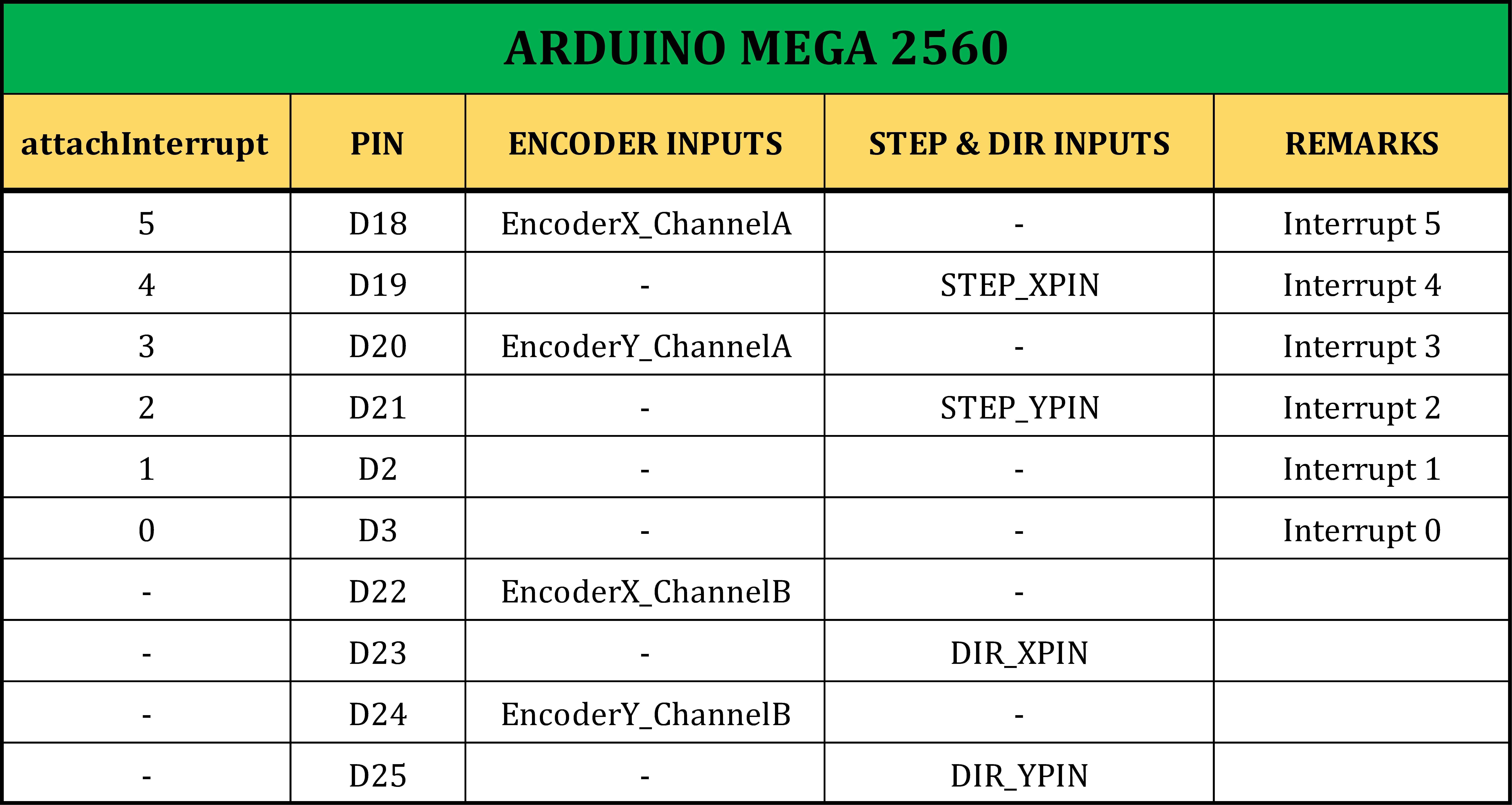 - OUTPUT: The PWM signals from Arduino L293D Motor Shield (controlled by Arduino Mega 2560) to printer DC motors.