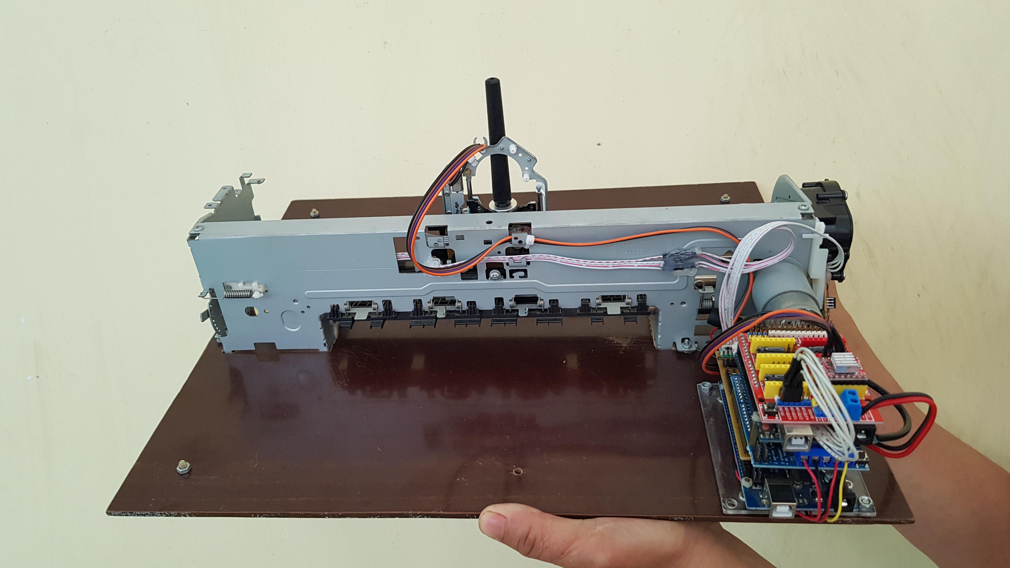 Today, I'd like to share how to build 3 axis CNC plotter from this printer, as well as, how we can control a DC motor plus its optical encoder by P.I.D through 2 signals: STEP & DIRECTION. In this project, DC motors can be simulated as same as stepper motors and we can control them via GRBL firmware for CNC application.