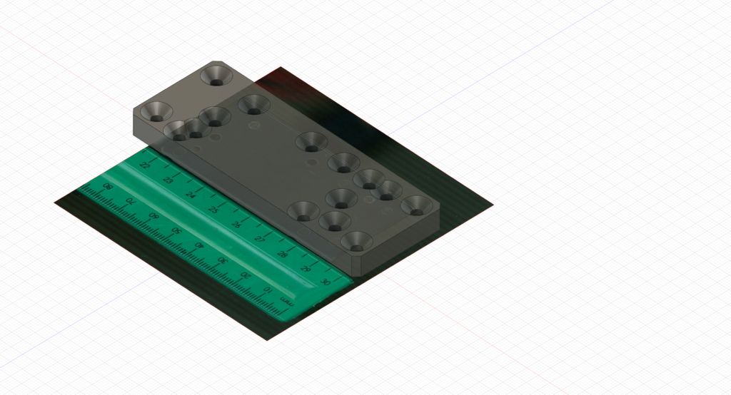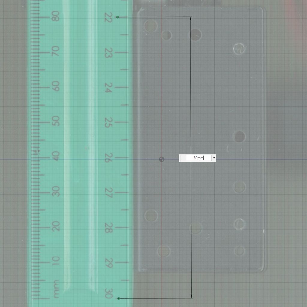 First I scanned the mounting plates along with a ruler on a flatbed scanner. It doesn't really matter what you use, as long as you have an object with one known dimension lying flat on the scanner.