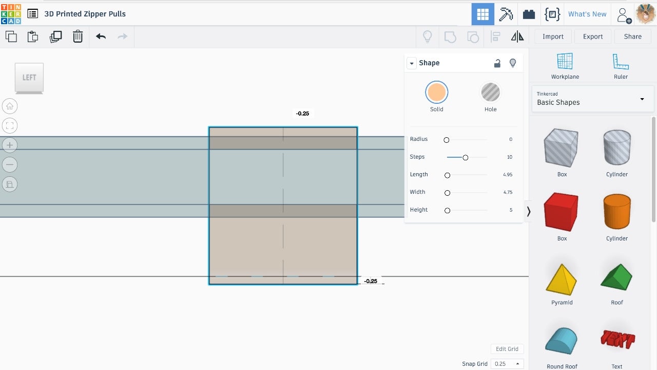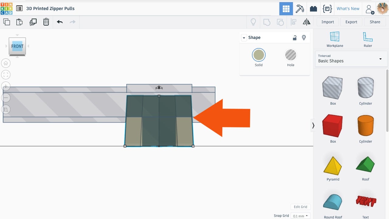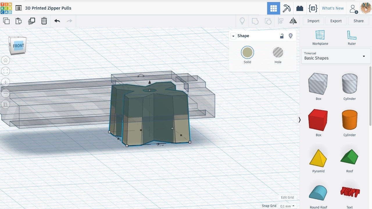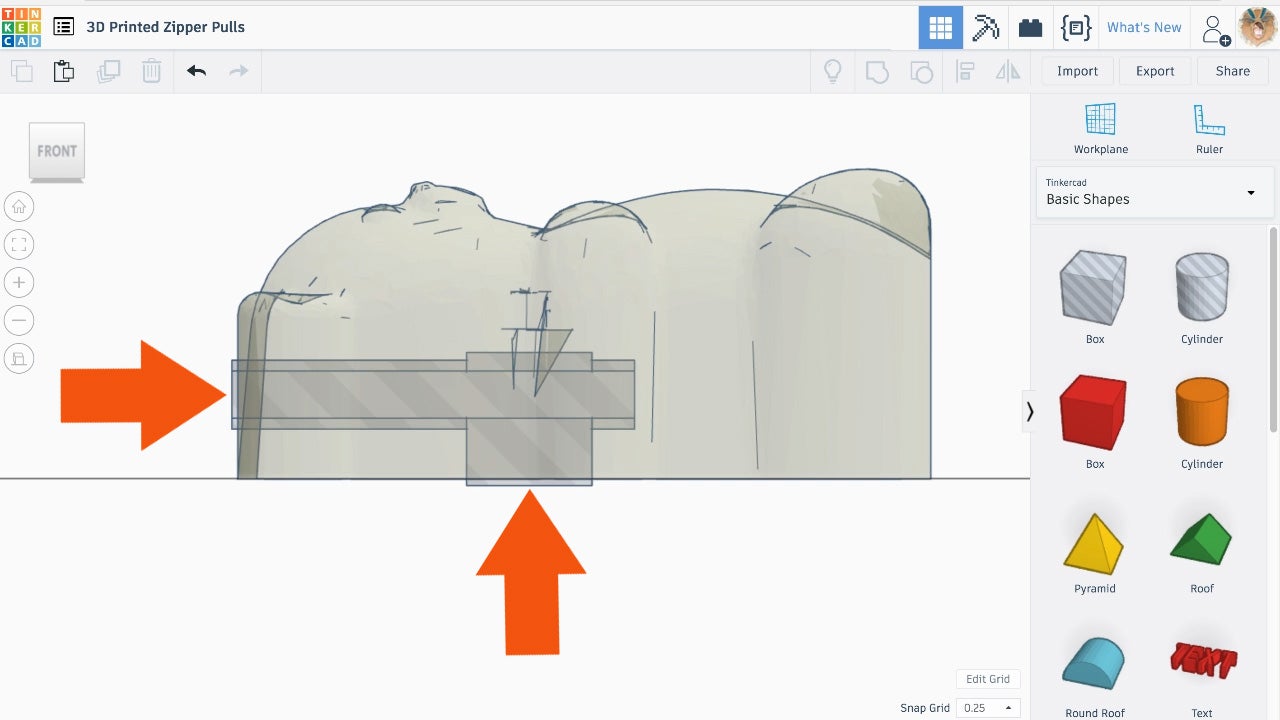 In this step, you will have the choice of modeling your own zipper pull from scratch or using an imported shape that you find and download from Thingiverse.