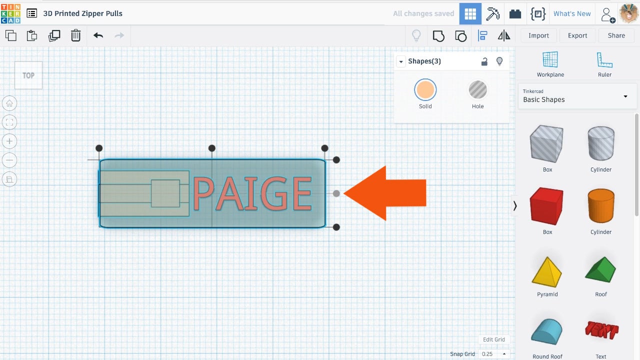 Ta da! You now have your finished custom zipper pull file. SELECT and EXPORT the file as an STL.