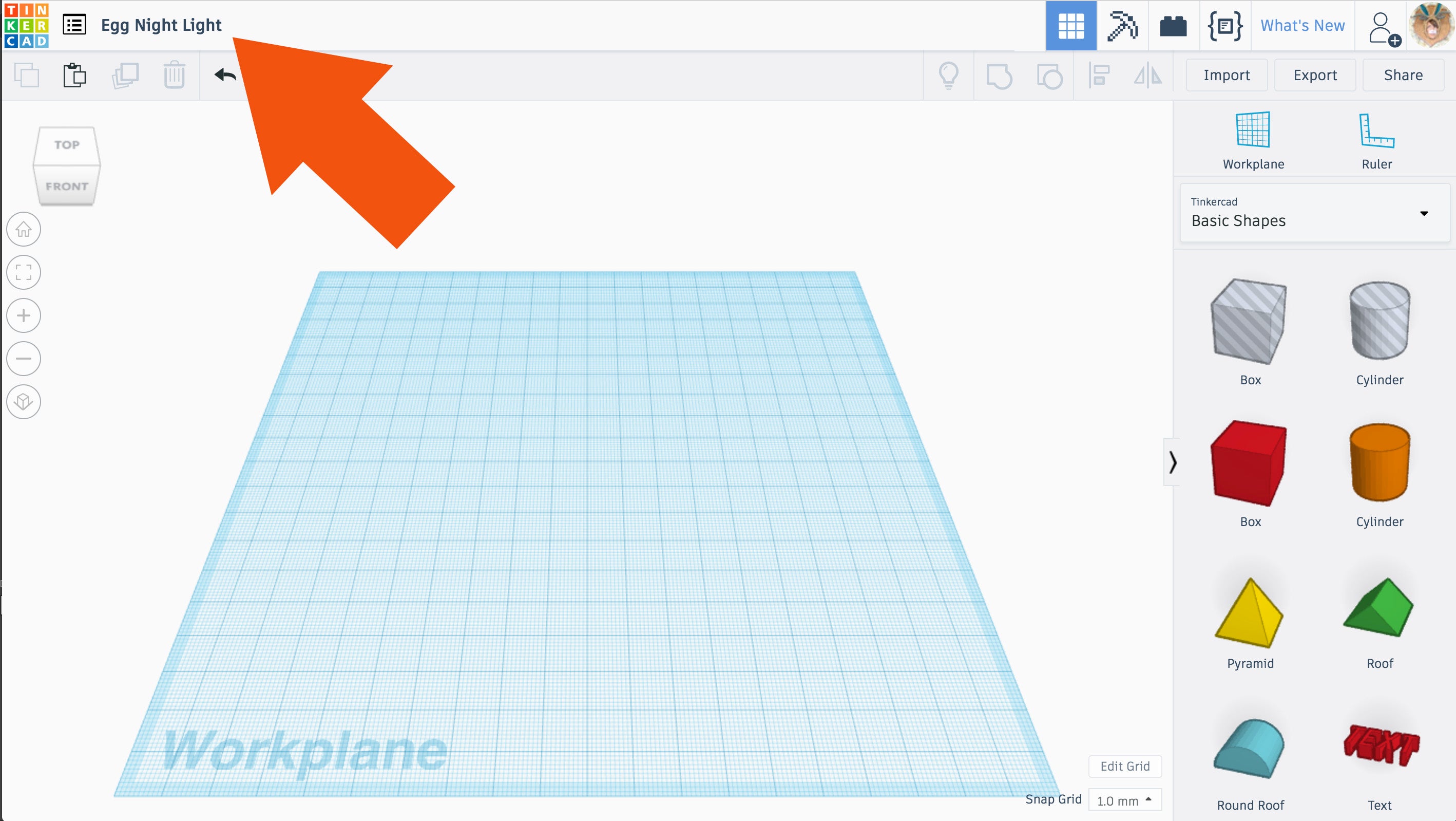 - Drag a box onto the workplane from the Basic Shapes menu.