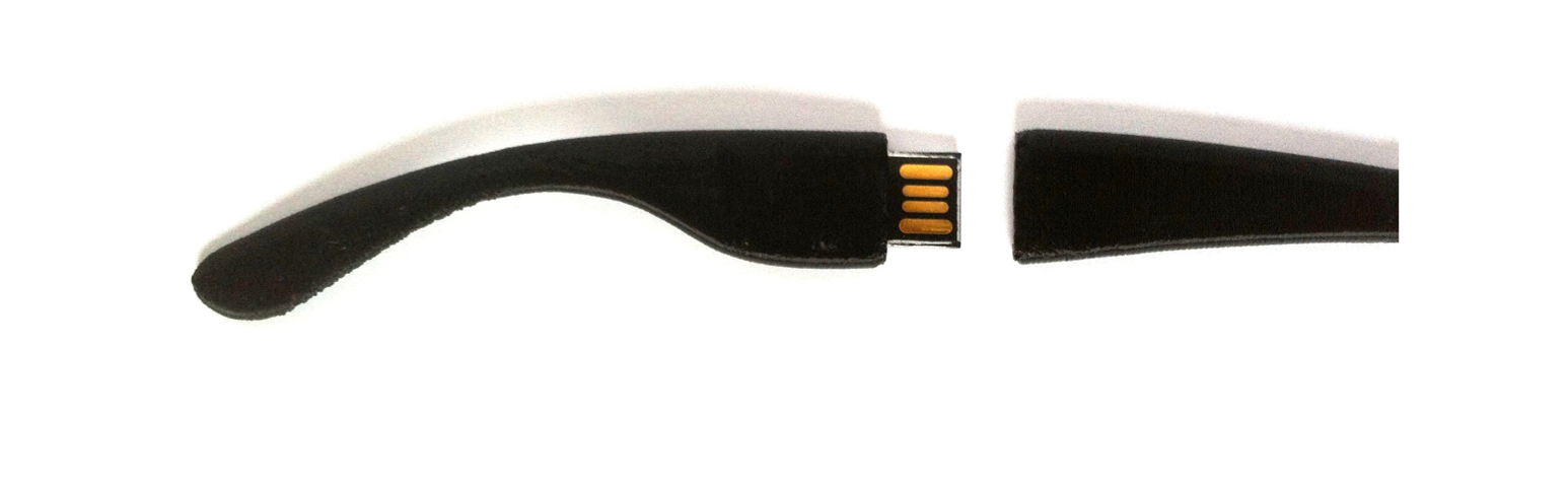 I then got the idea to include things in the arms. So I have designed new arms for my current sunglasses, and I have added a USB drive and a pen.