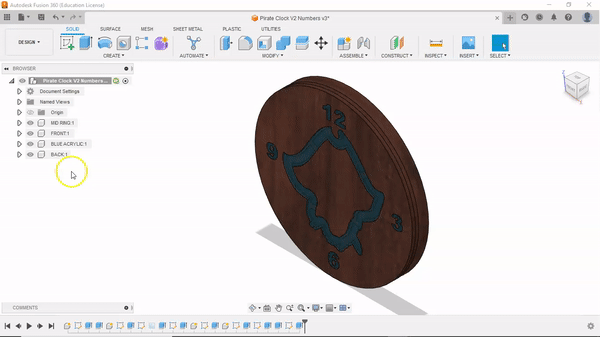 I skipped sketching ideas to save some time and jumped straight into designing on my laptop. I teach CAD with Fusion 360 for all of my classes. Before starting my 3D model on the computer I measured the wall clock from my other room as reference. I didn't want to make my clock much, if any, bigger than the one I had before. The clock measured 12" in diameter and 1-5/8" thick.