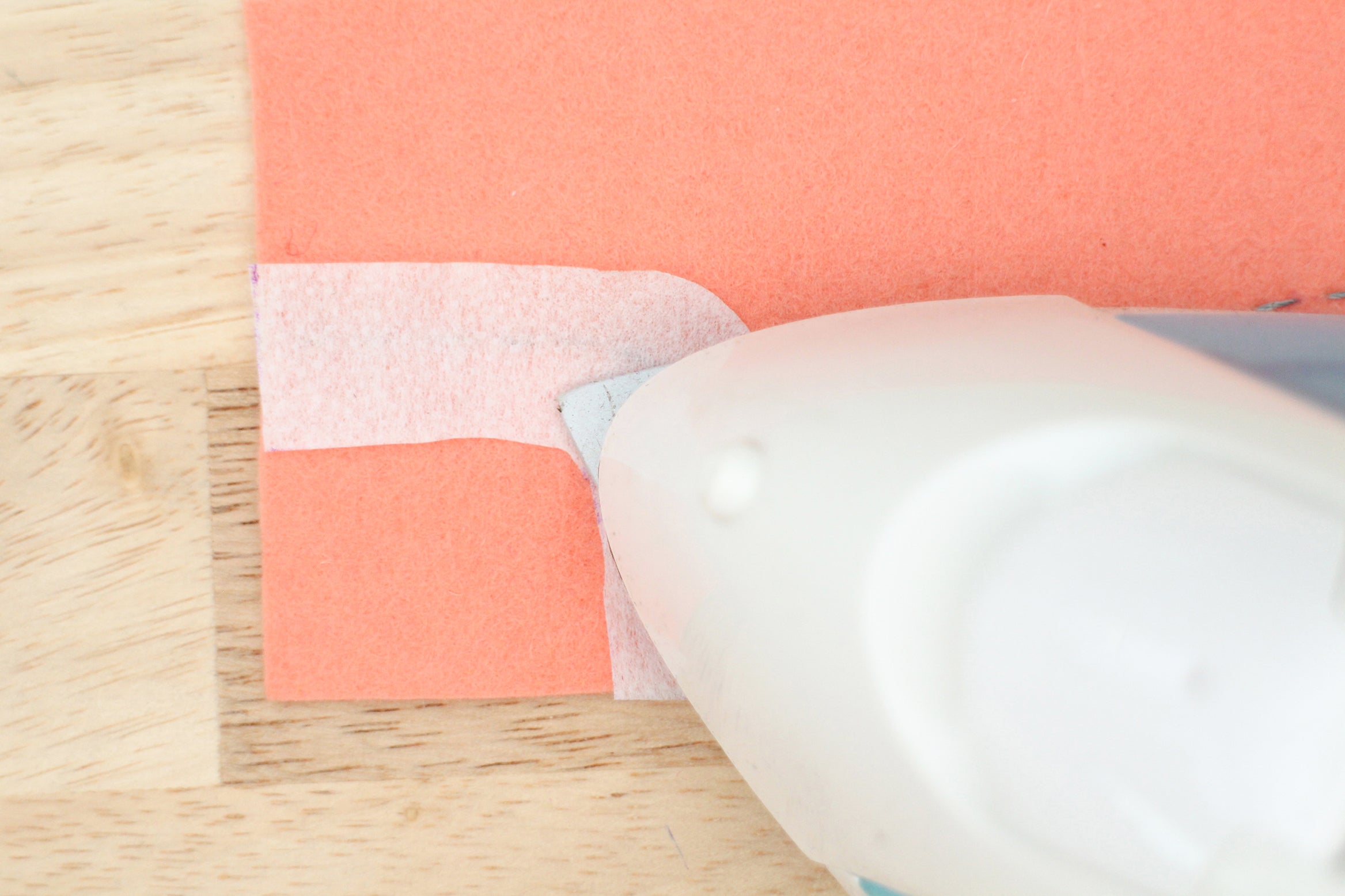 Heat up the hot glue gun and put a layer of glue on the felt around the board. One layer should do it. Once the glue hardens, put another thin layer of hot glue down.