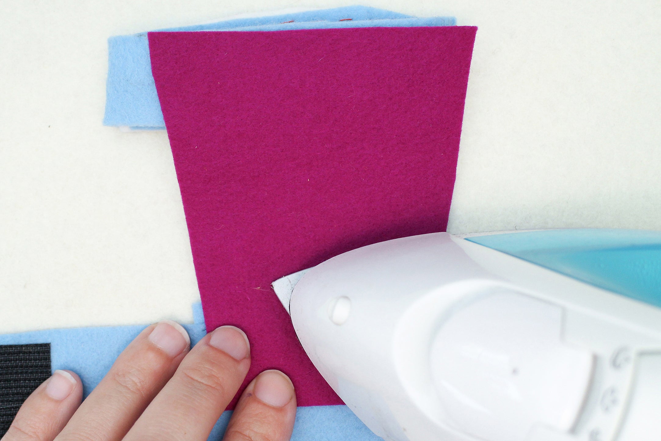 Iron some Heat 'n' Bond to a piece of felt. If you want specific instructions on how to do this, go back to the Covering a Circuit: Iron-on Fabric step in this lesson.