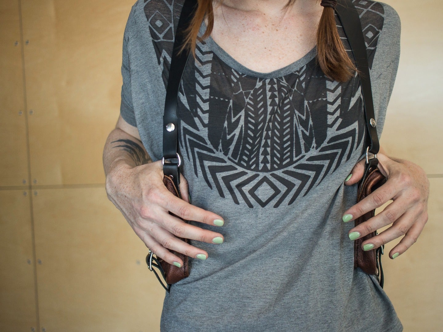 The last strap variation I am going to show you is a double shoulder harness that will attach two of the smaller bags under your arms. Harness bags like these are great for festivals, concerts and other adventures where you want your hands free.