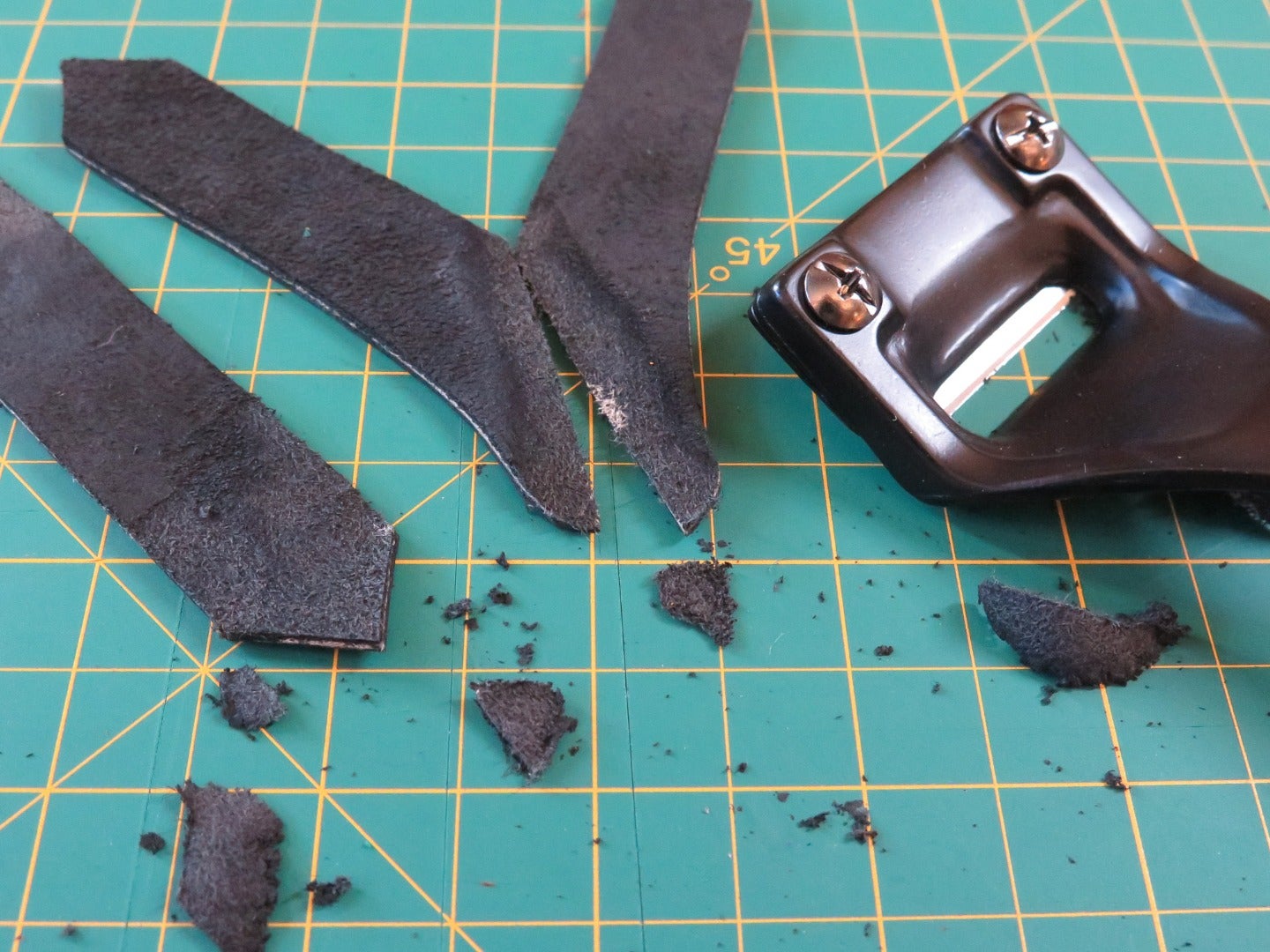 If you find it hard to maintain an even angle, you can try drawing a guide line on your leather where you want the bevel of your skive to start, and then follow this line as you pull the skiver toward you.