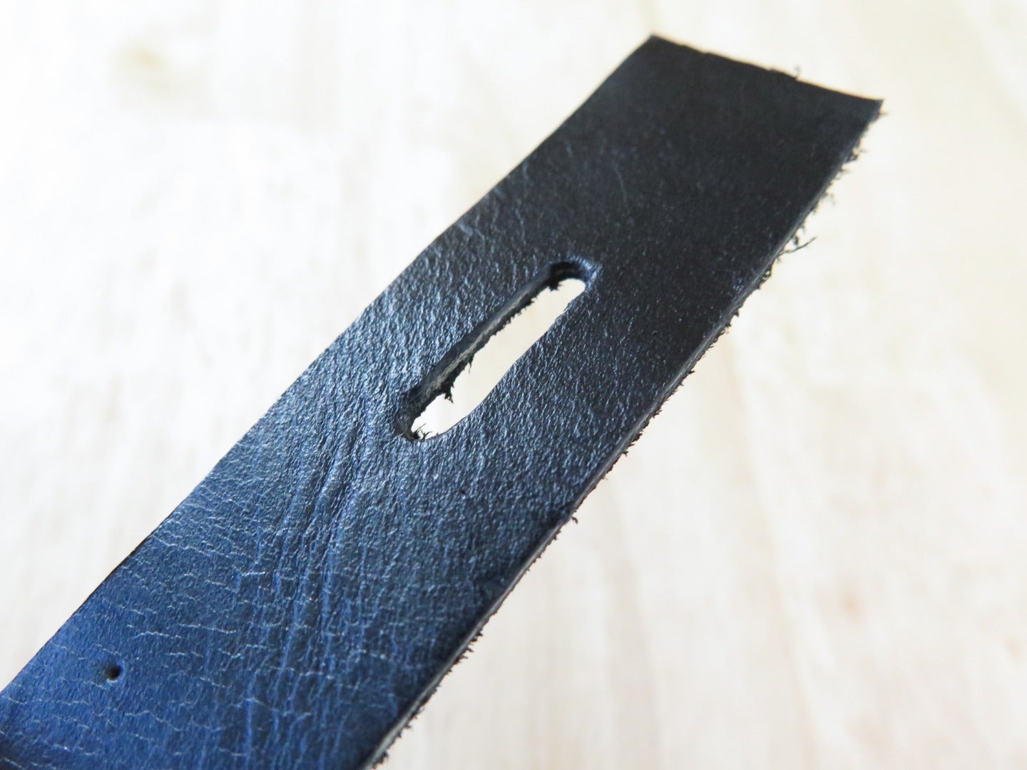 "title": "fold the leather in half and cut on the fold",