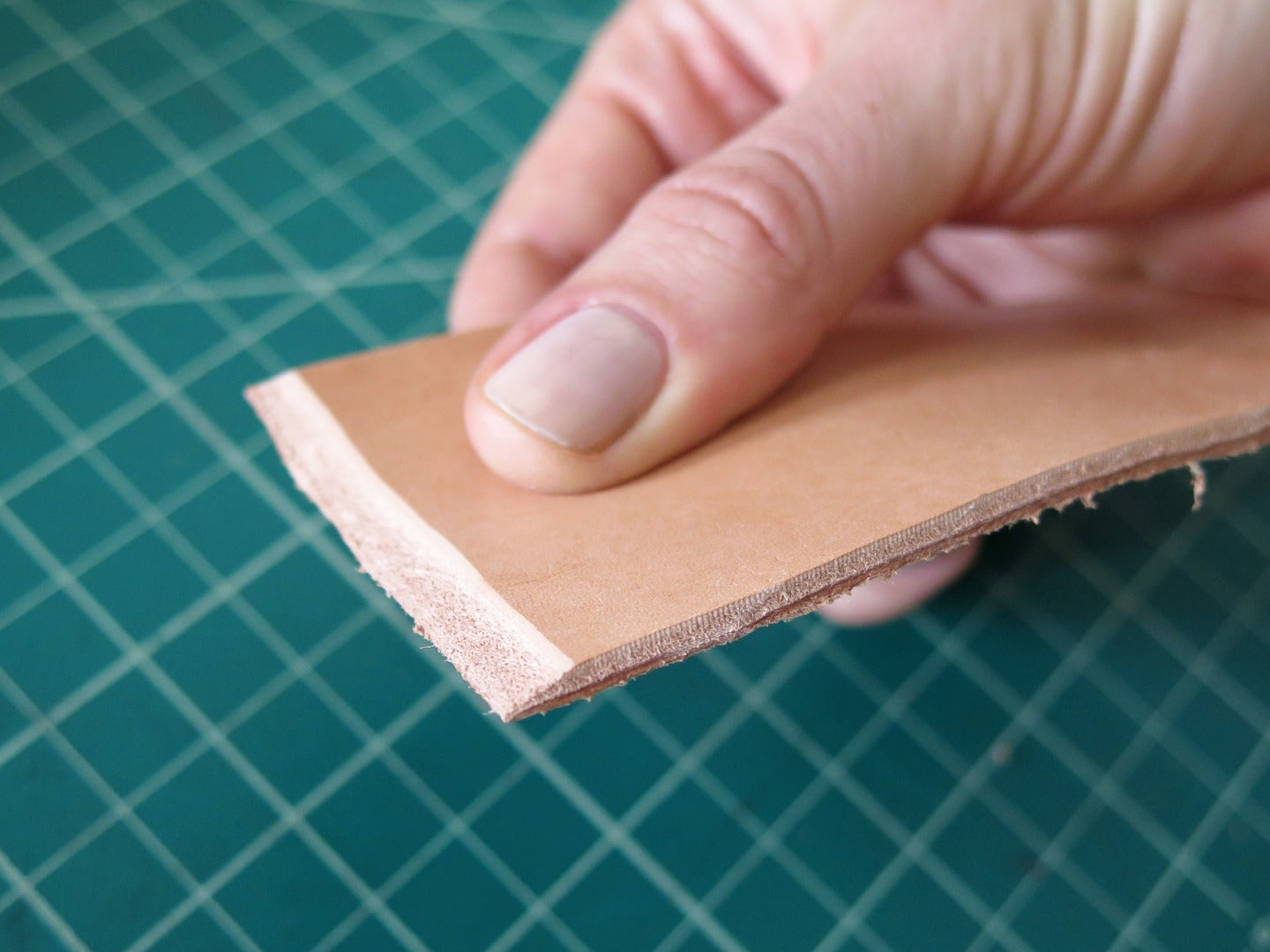"question": "To skive the long edge of a piece of leather you should:",