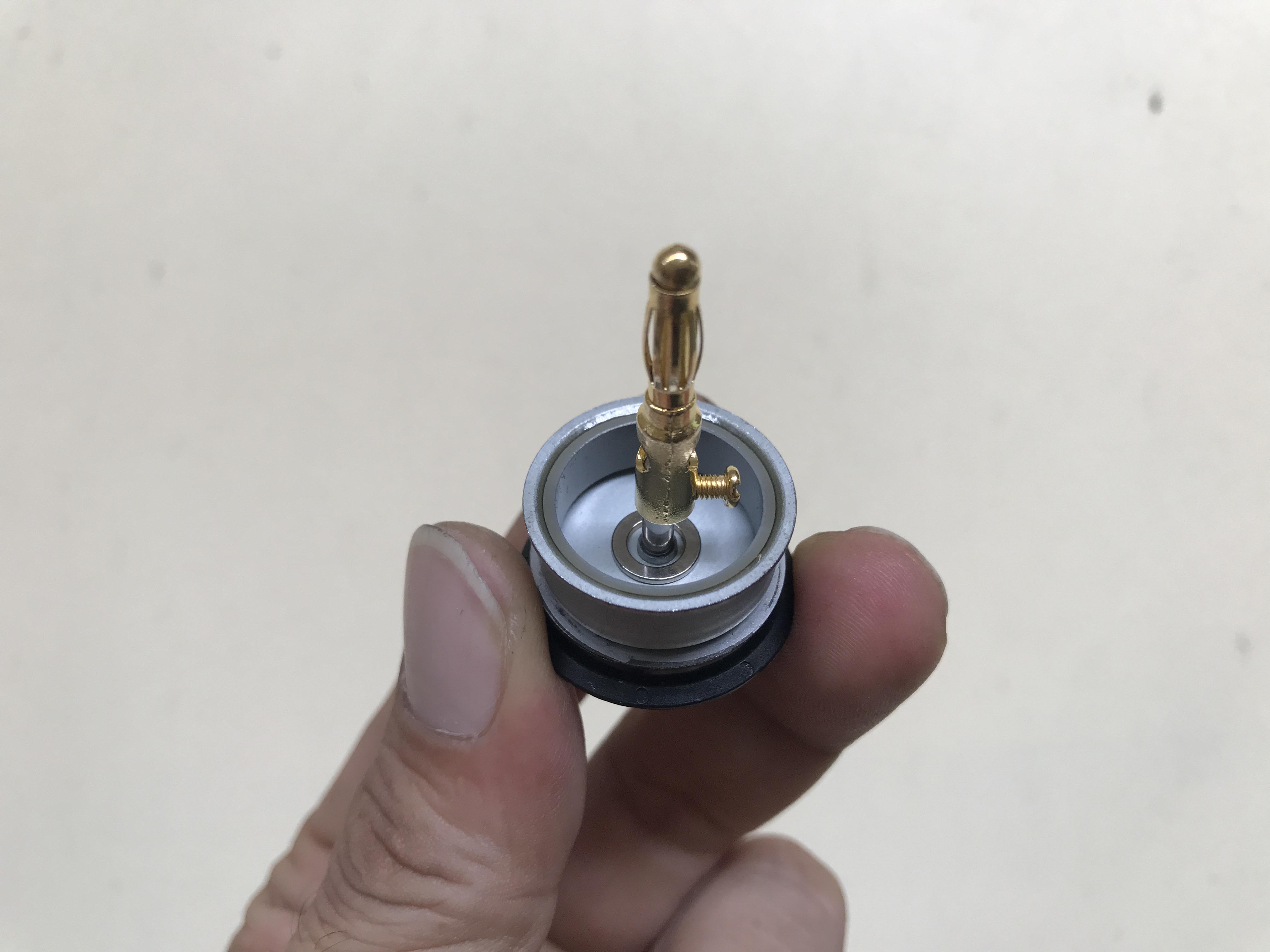 I connected a banana male connector to this shaft and tightened the screw on one side.