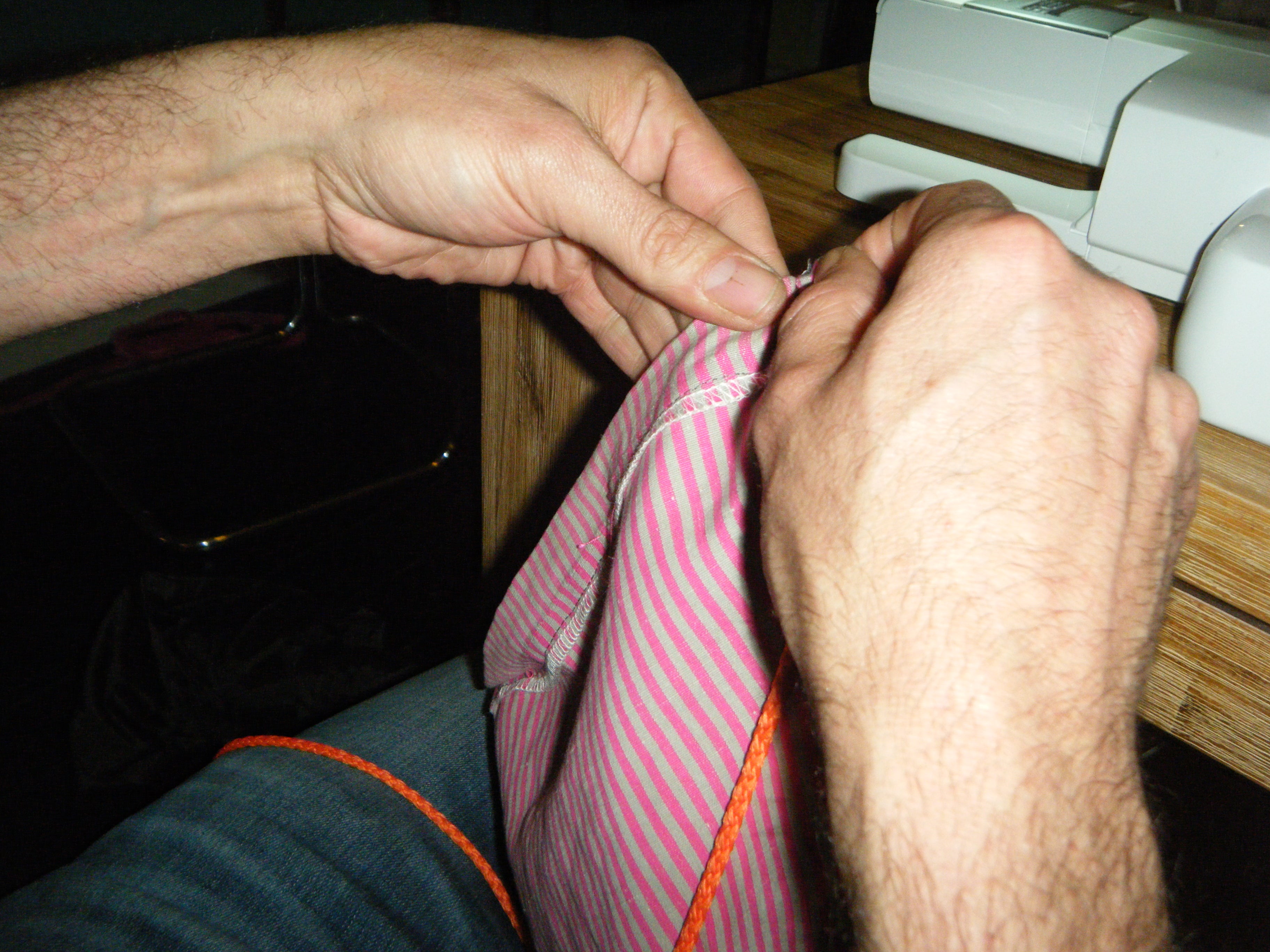 Then I sew in the channel with 3 straight stitches (with long stitch length) down them.