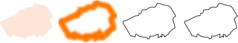 - On the first territory, set the background (decrease the opacity, remove the stroke paint); On the second one, don't fill it, add a stroke with a large width (5 mm), make it blur (5%); Then leave the 2 last territories as they are.
