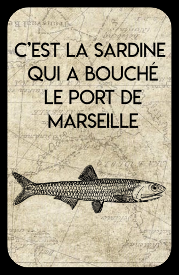 Also, we added a card to end the game, which is a card with a sardine and the sentence "C'est la sardine qui a bouché le port de Marseille", which is translated "The sardine that choked the port of Marseille". This expression is to denote the supposed tendency of the inhabitants of Marseille to exaggerate their discourse.