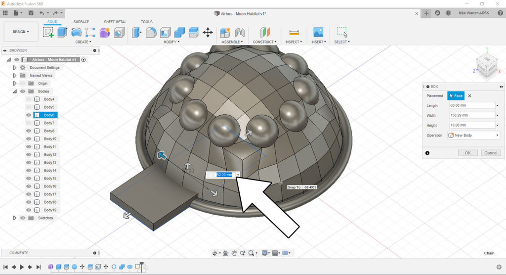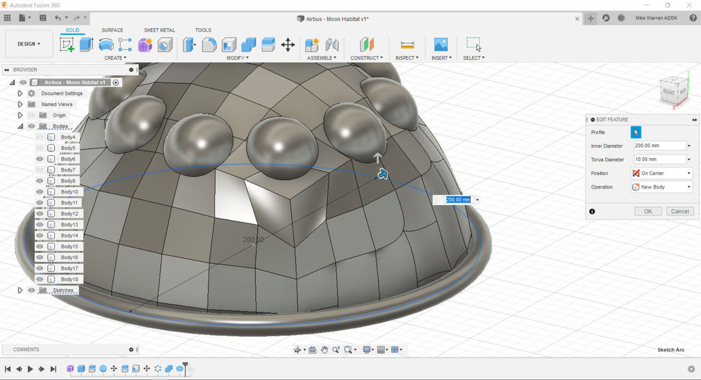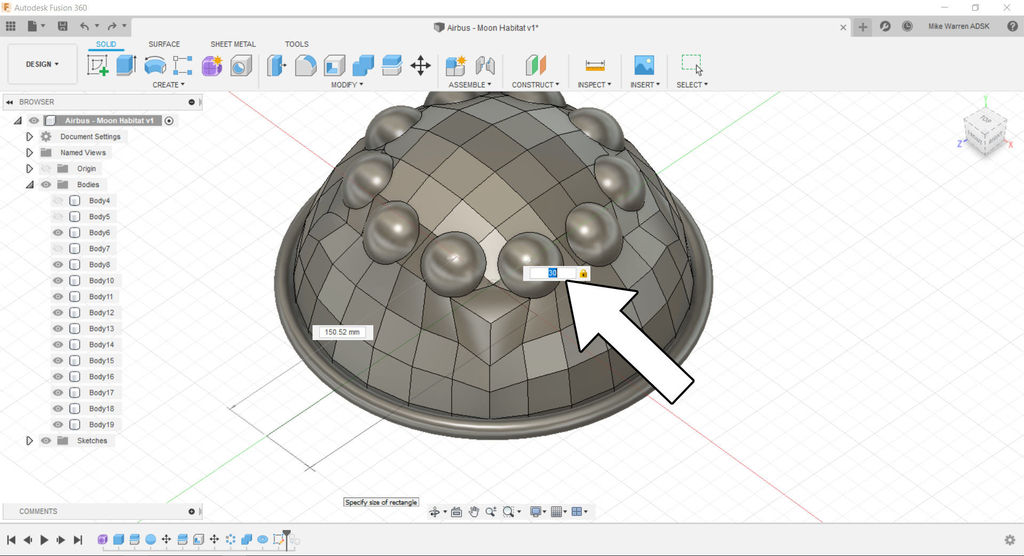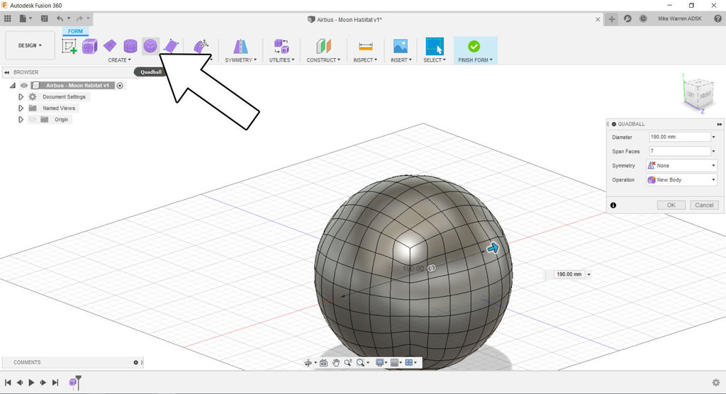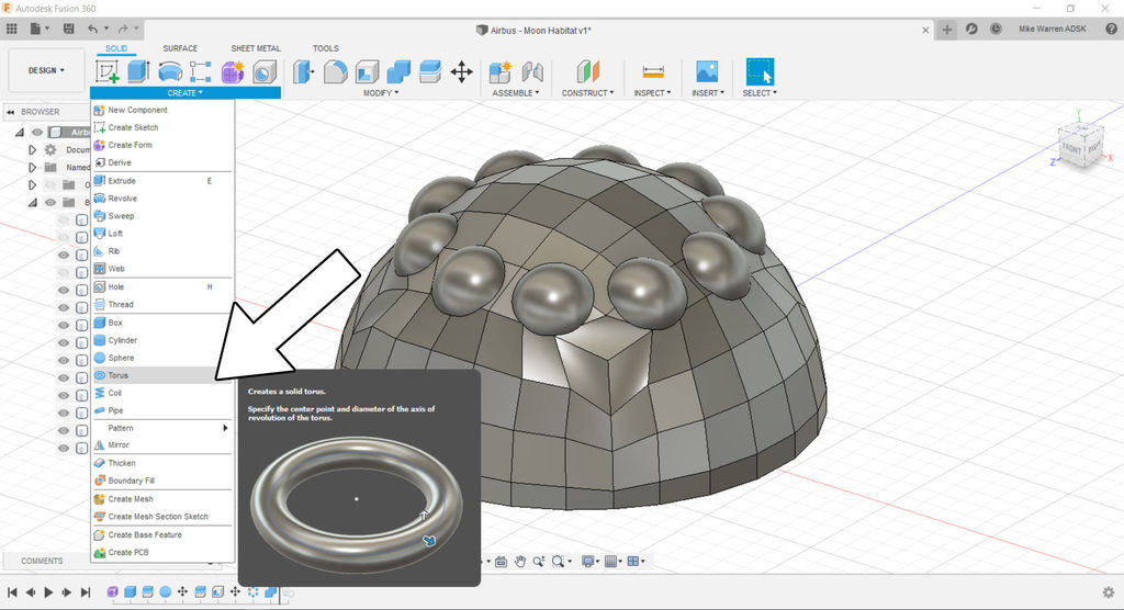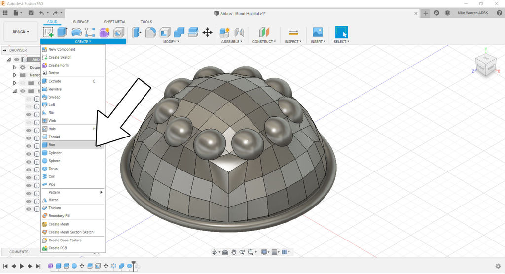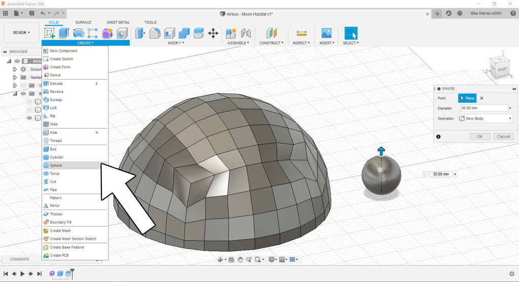 We'll start by using the mesh form function in Fusion 360 to make the dome shape of the habitat.