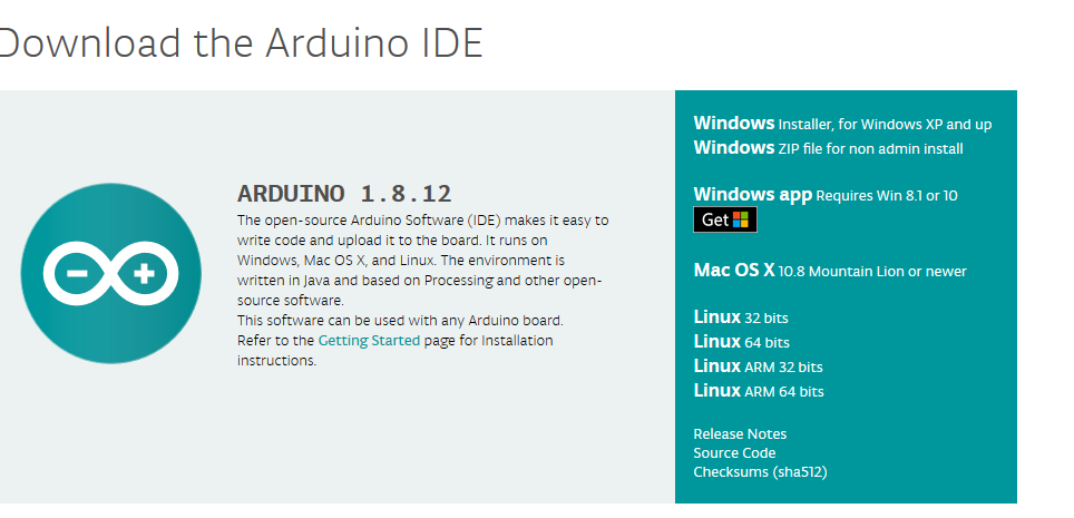 - Click on Software then Downloads to get ARDUINO 1.8.12