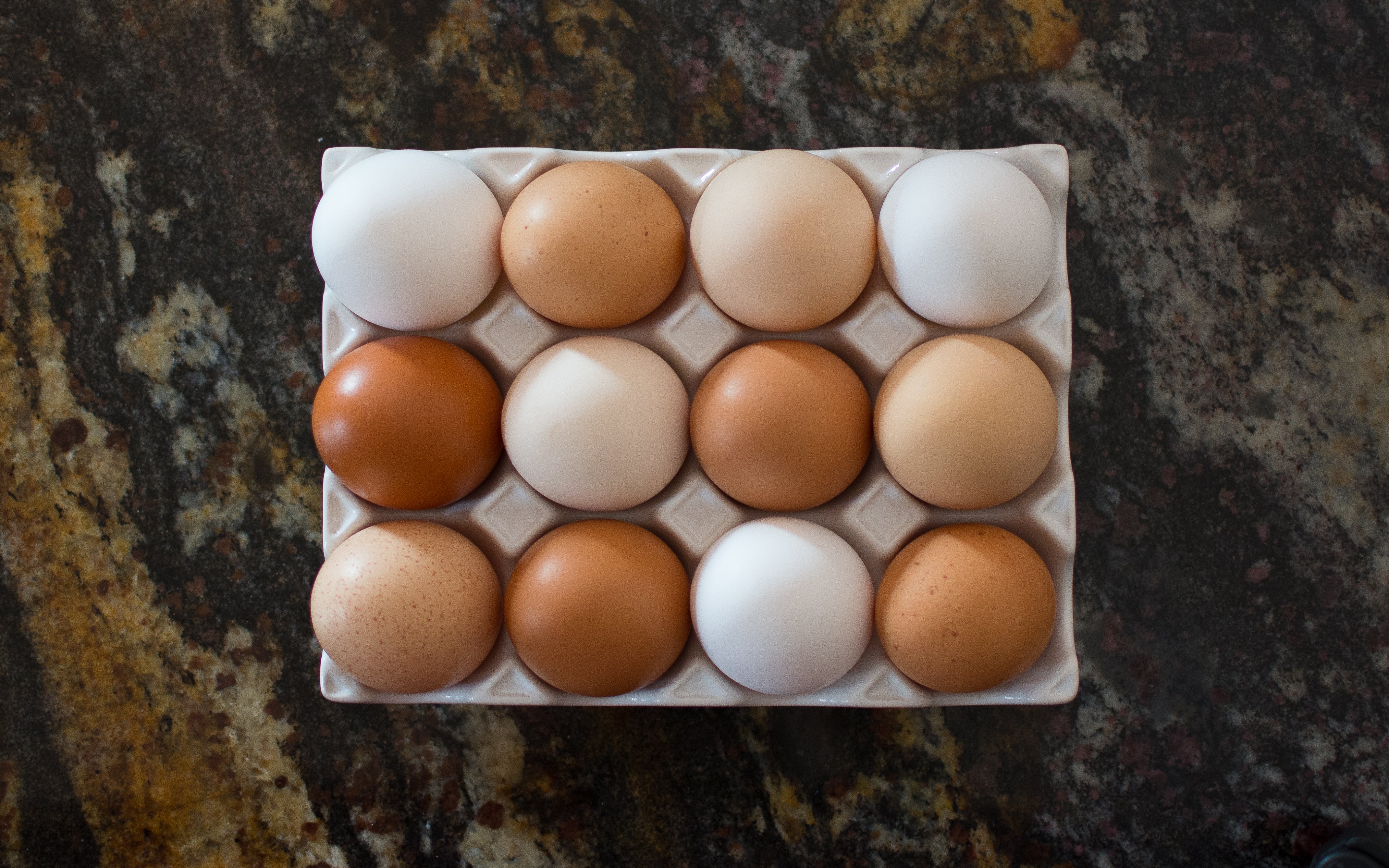 Eggshells are mostly white and shades of brown in color. The color of the shell is an indication of different breeds of chickens and does not affect or determine the quality of an egg.