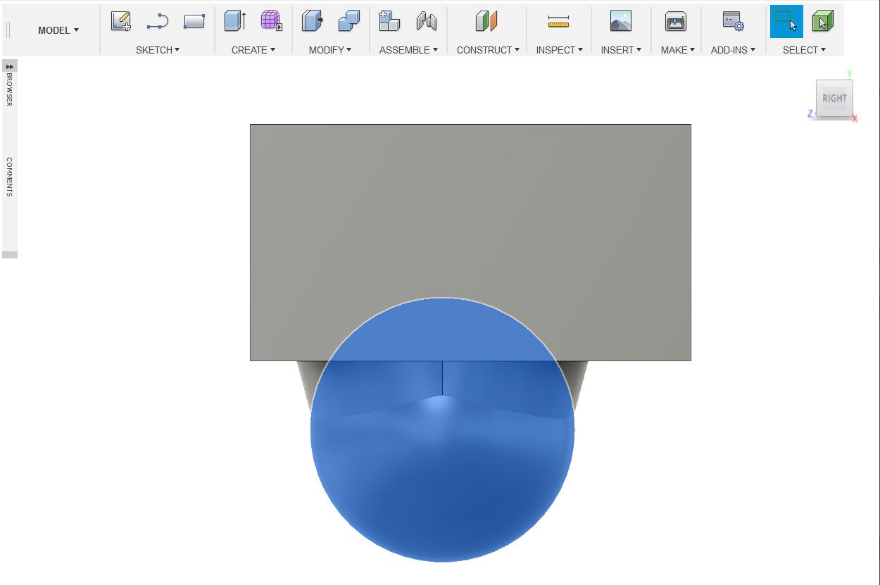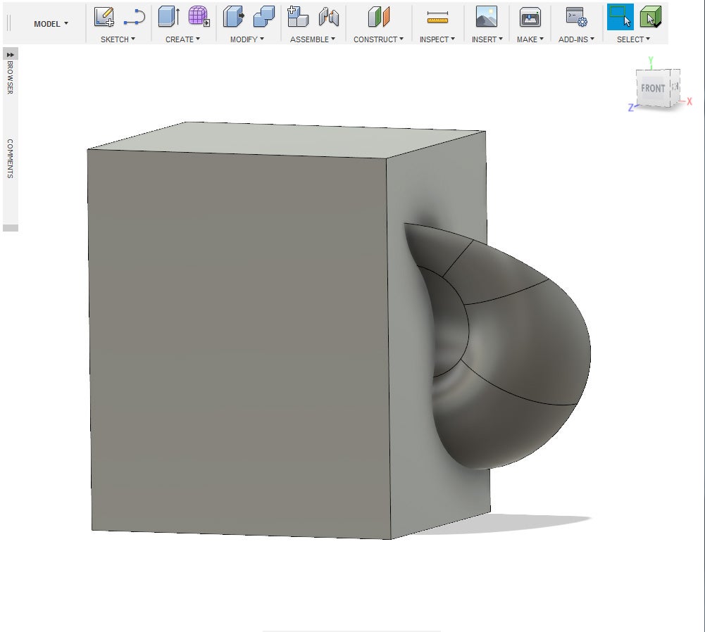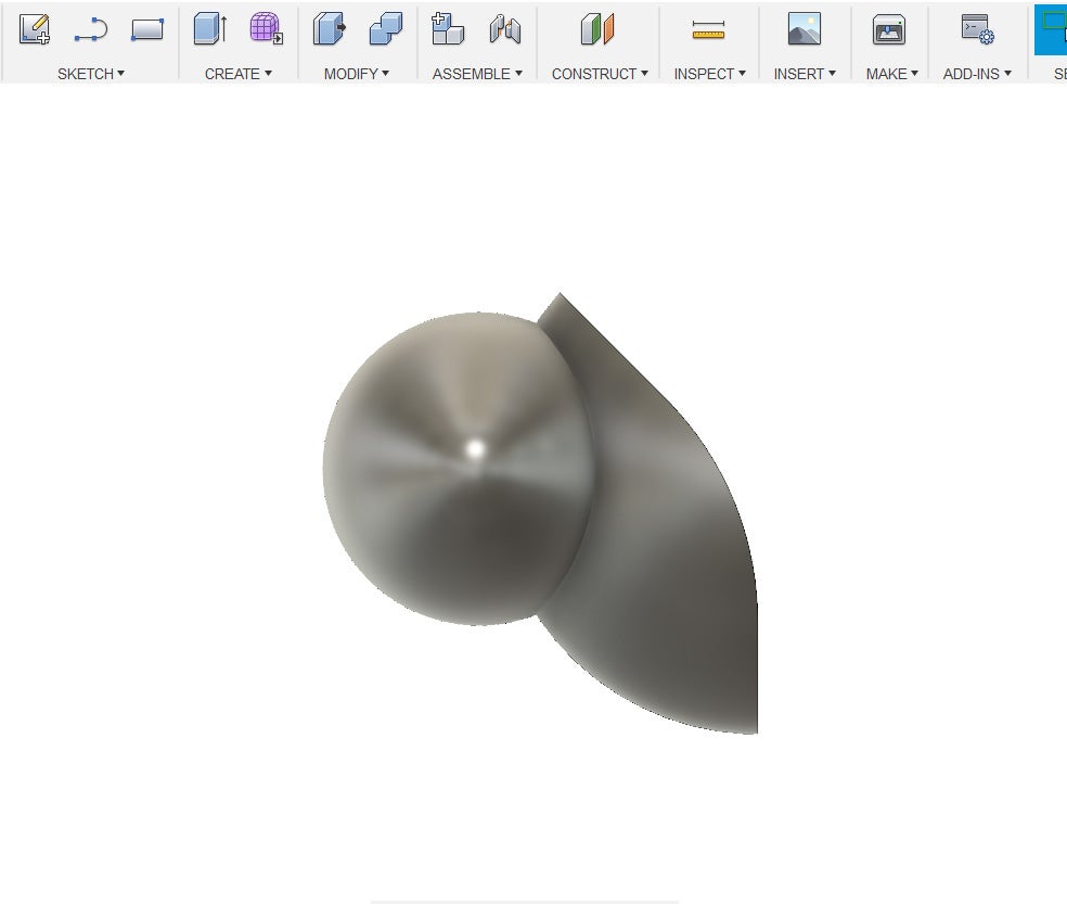 9. Create a 45 mm sphere and move it to the left side of the object and have it intersect somewhat into said other object.