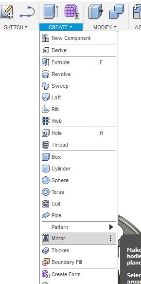 1. Once you have a outer petal it is time to create the other outer petals. Under the Create Menu, select mirror.