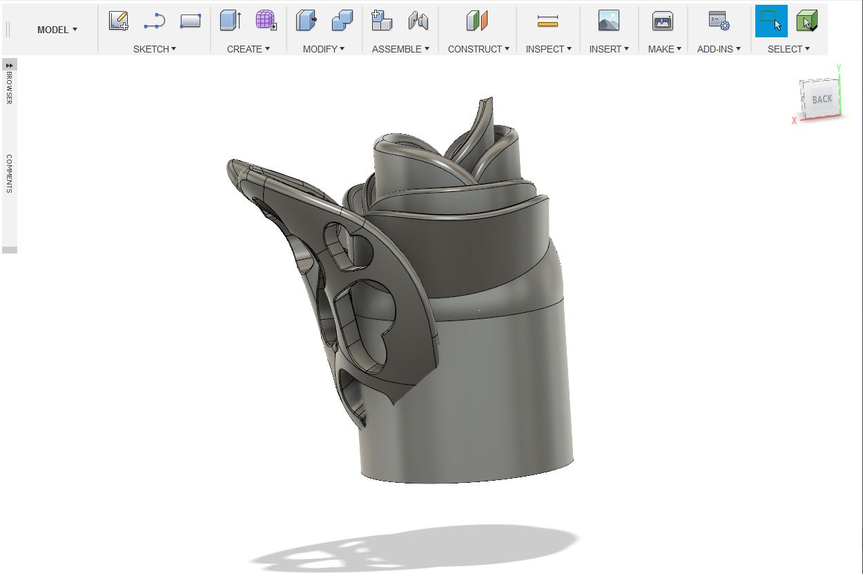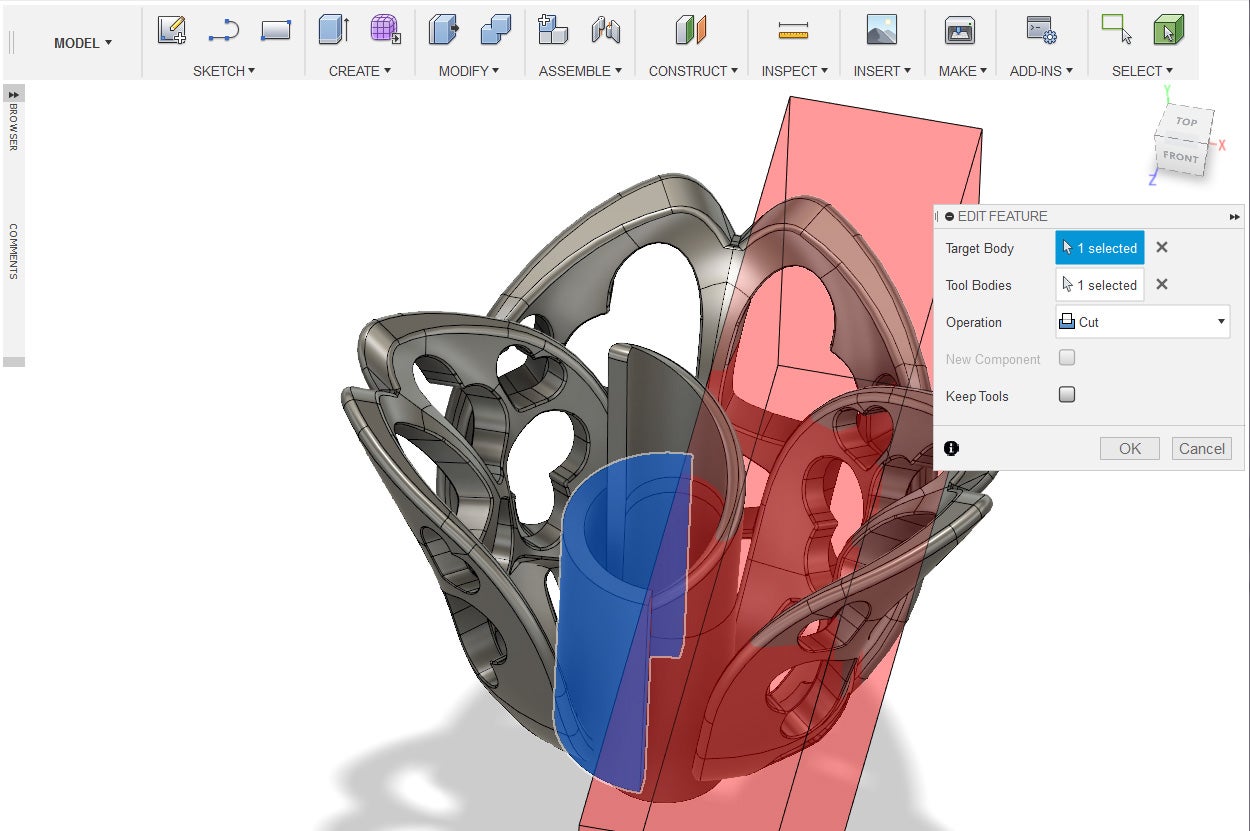 9. Using the combine tool, combine the shapes with the box as the tool bodies and the operation to cut.