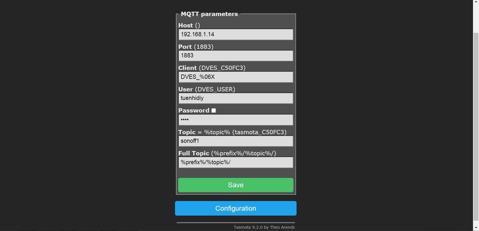 - Exterior Light is controlled by other Tasmota - SONOFF Basic.