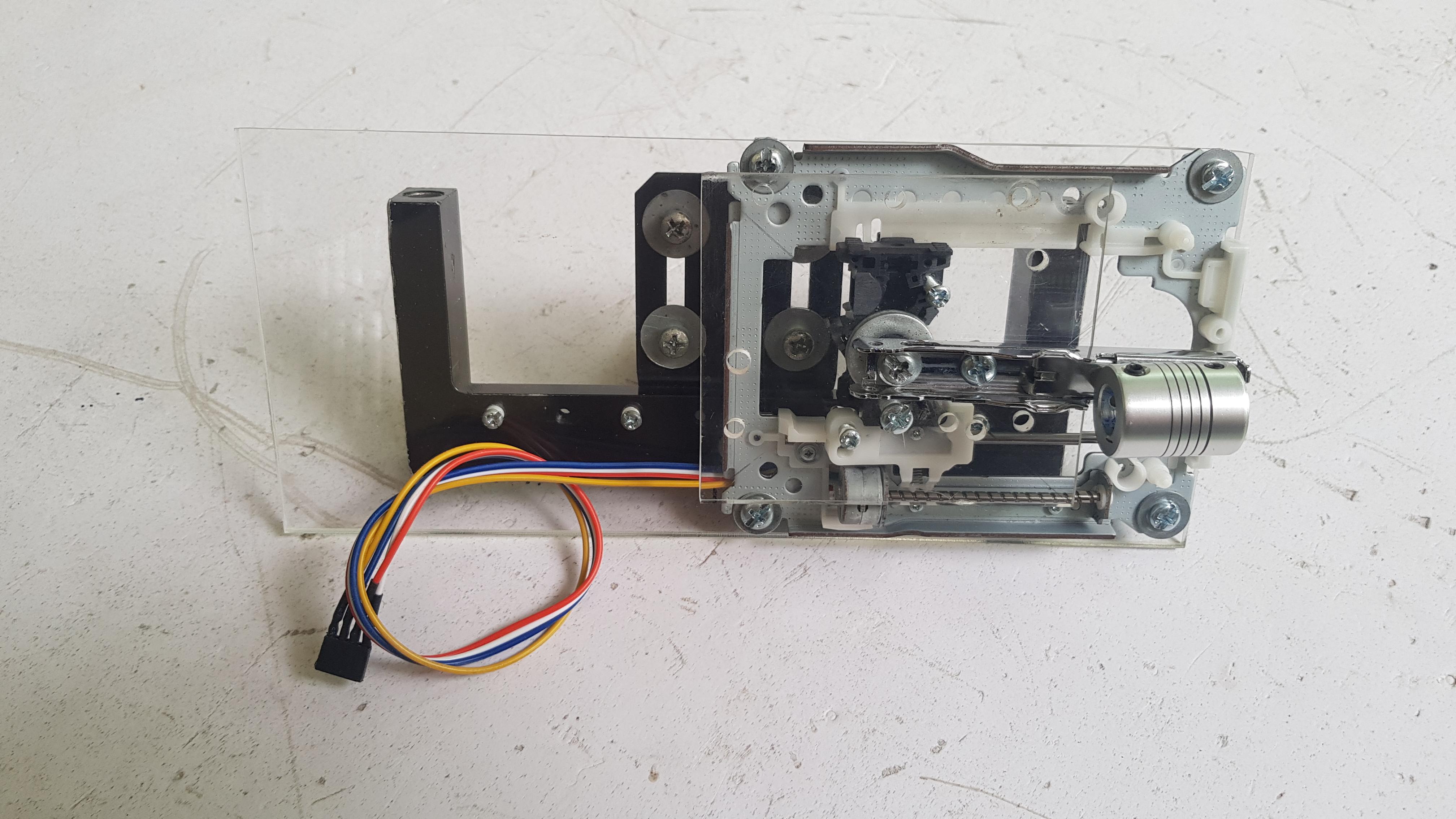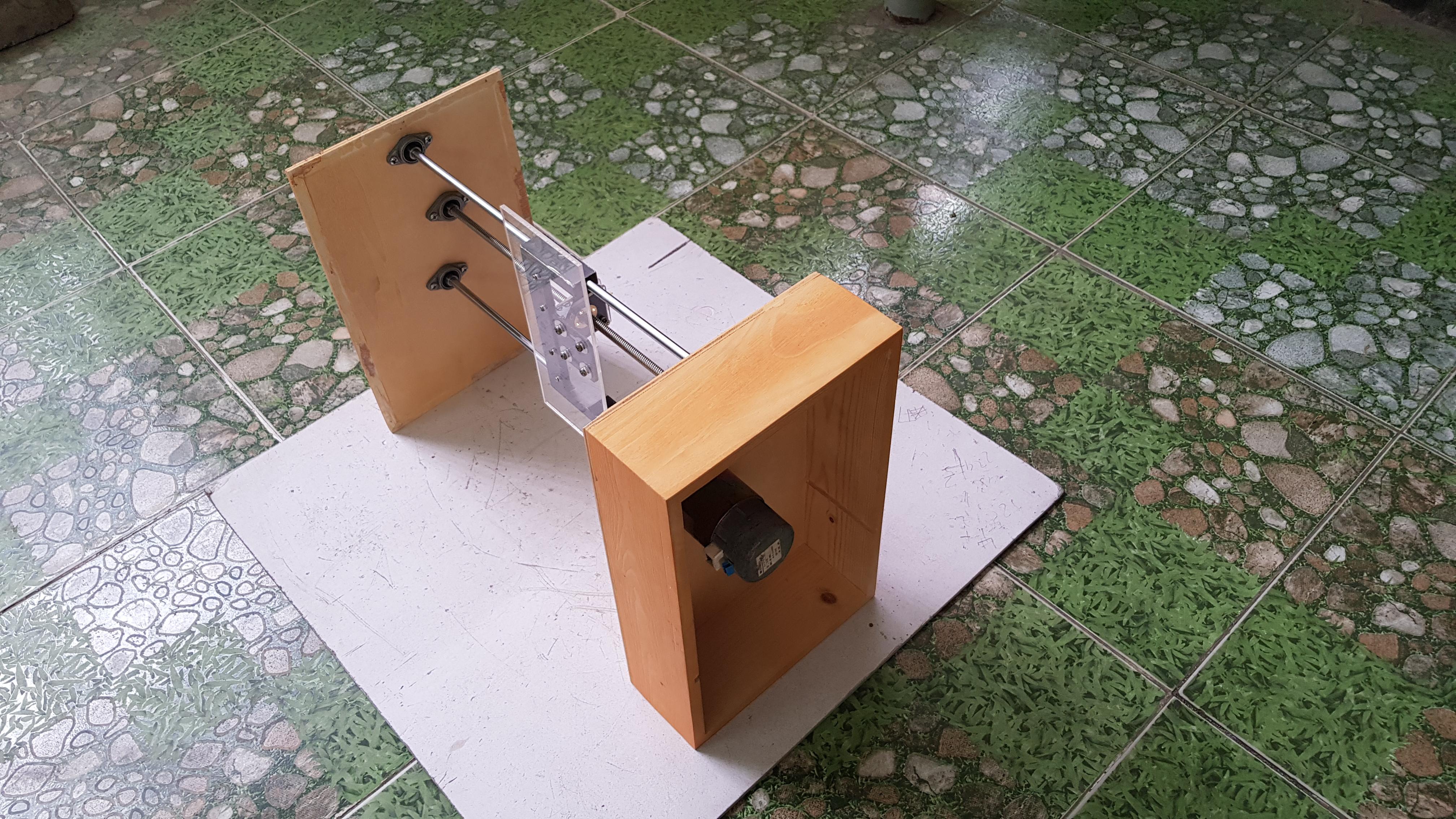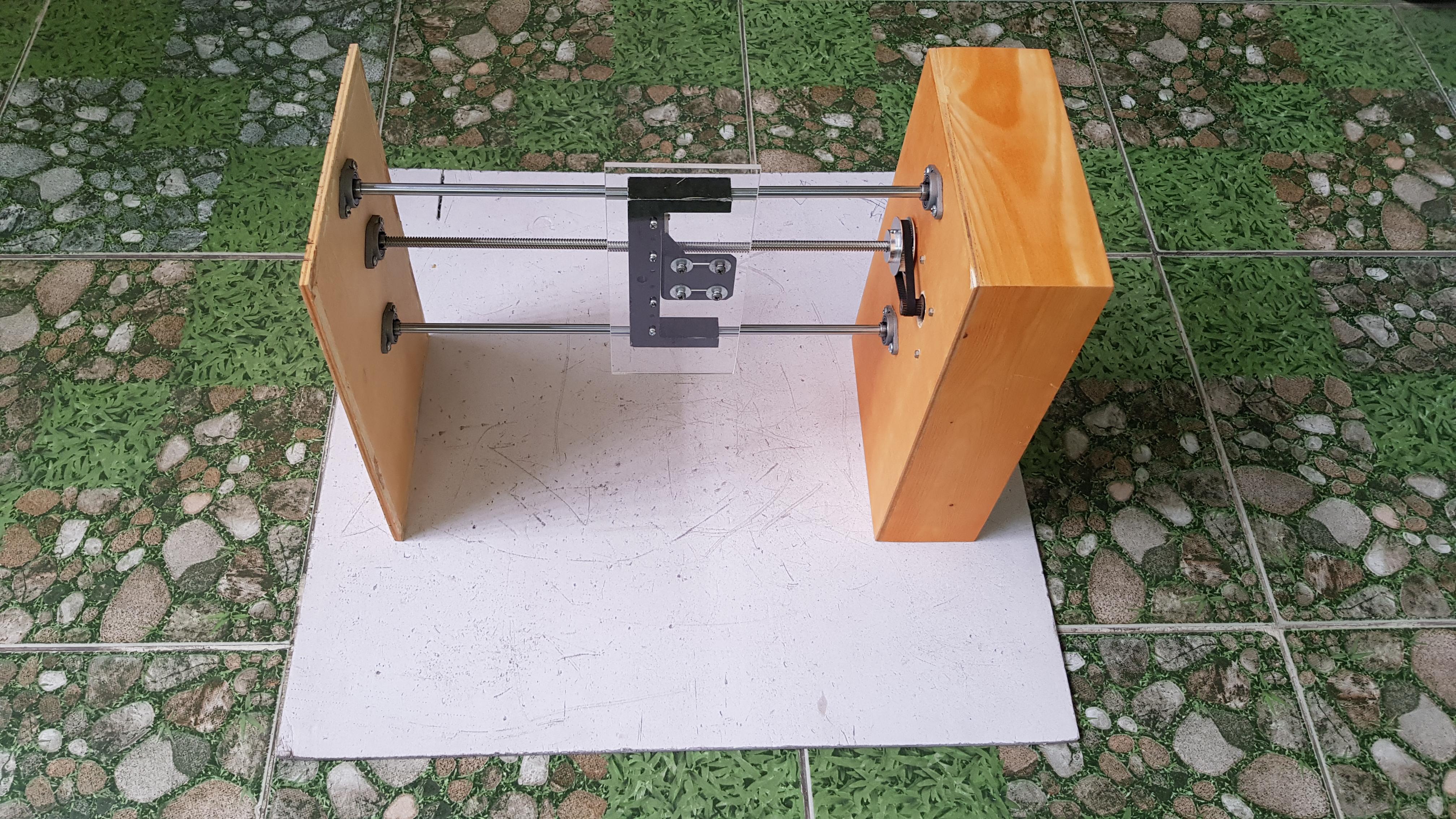 The X axis servo motor was hidden inside the box. One acrylic sheet dimension 100 x 230 mm was installed on the X axis and later one CD drive will be mounted on it for Z axis.