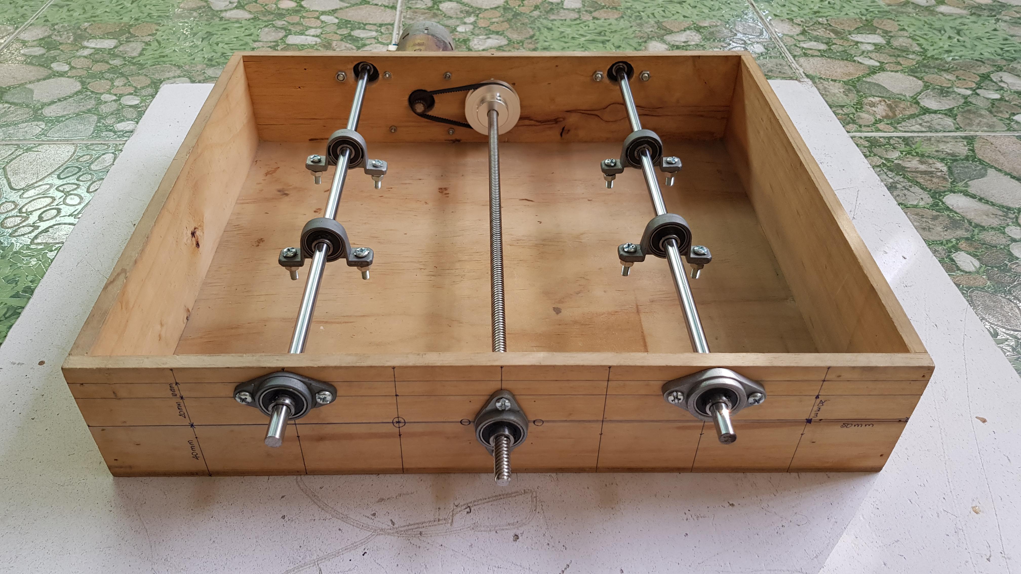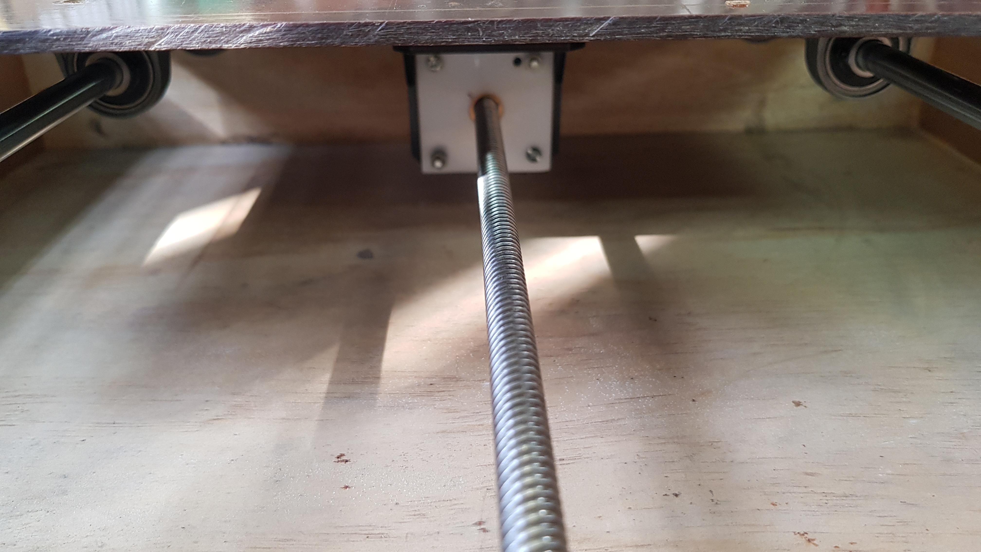Aligning the lead screw and shafts to be sure that the working platform worked smoothly by hand.
