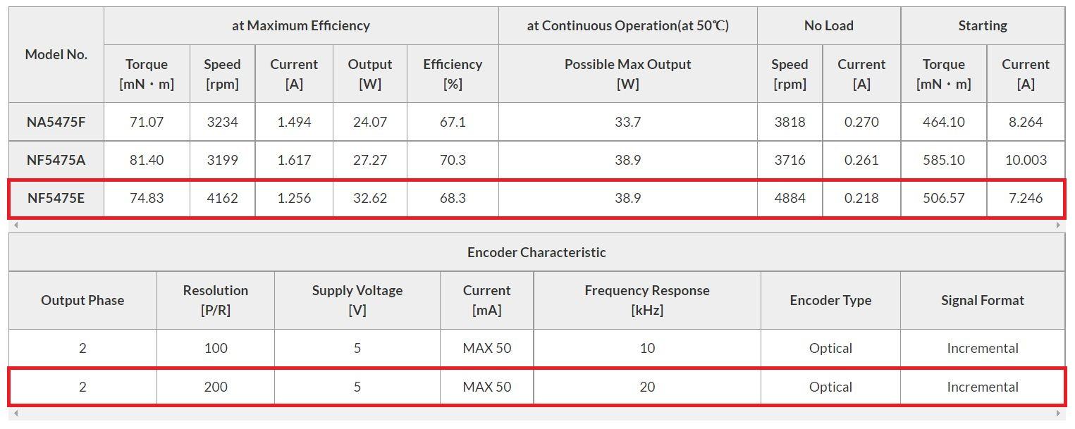 Main DC servo motor NF5475E parameters are marked in red rectangular below: