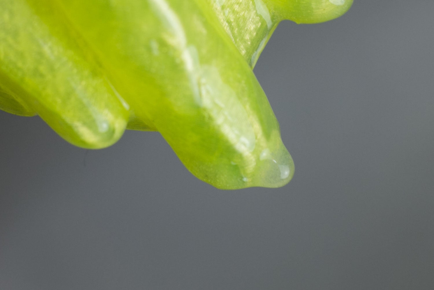 Helping hands also work really well. Especially if you mask areas you can use the masking tape to hold the 3D print as shown in the picture on the right. You can see how nice and smooth the pieces can turn out. The horn was printed with a layer height of 0.15 mm.