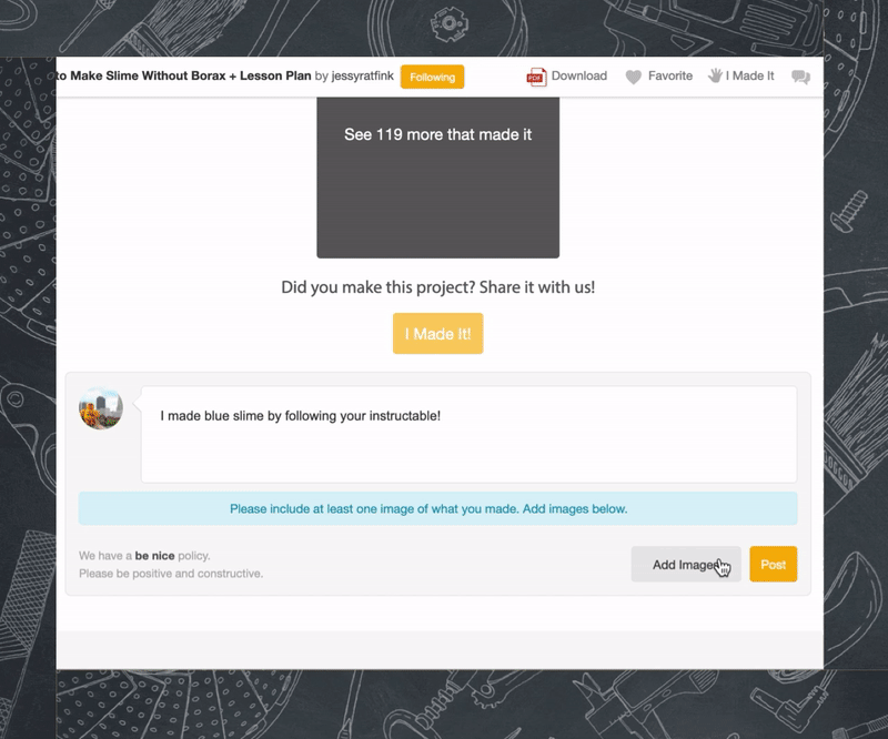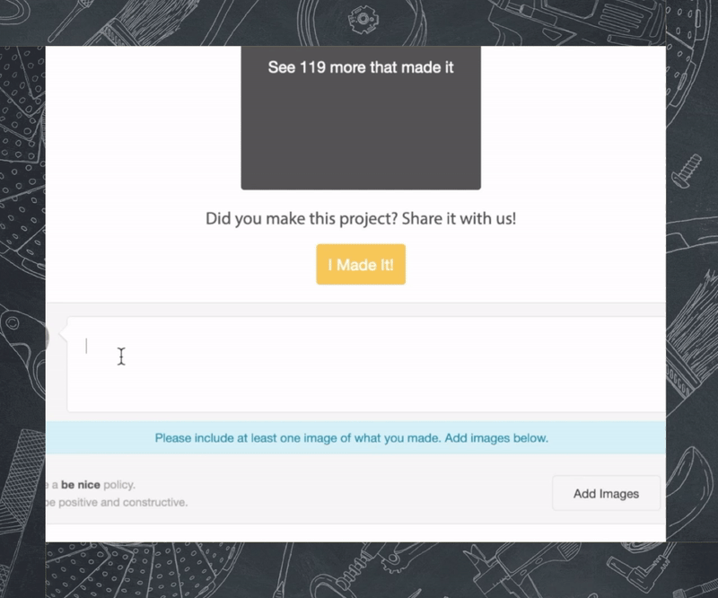 1: Click the “I Made It” button at the bottom of the instructable. A comment box will appear.