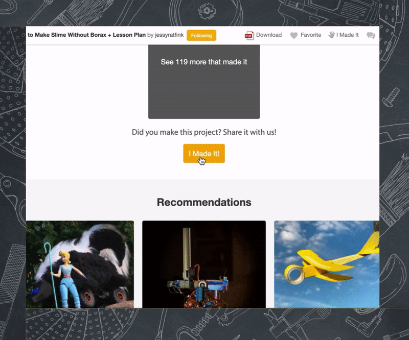 Once you’ve found an instructable you want to assign to your students, send them a link to the instructable and ask them to submit an I Made It.