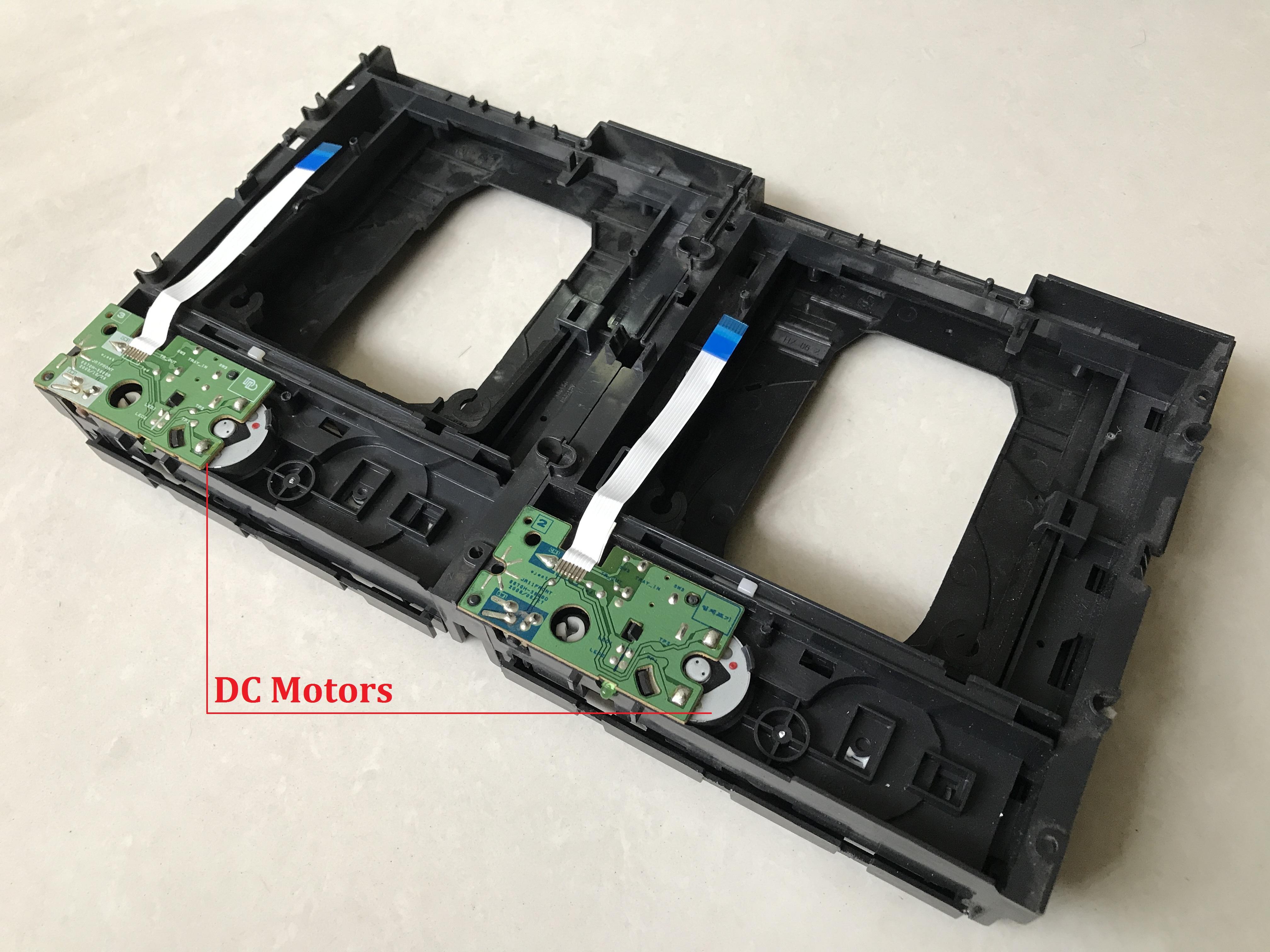 After using stepper motors for mini CNC projects, there are still some DC motors left in the CD/DVD player. They are used to insert or eject CD/ DVD plastic tray.