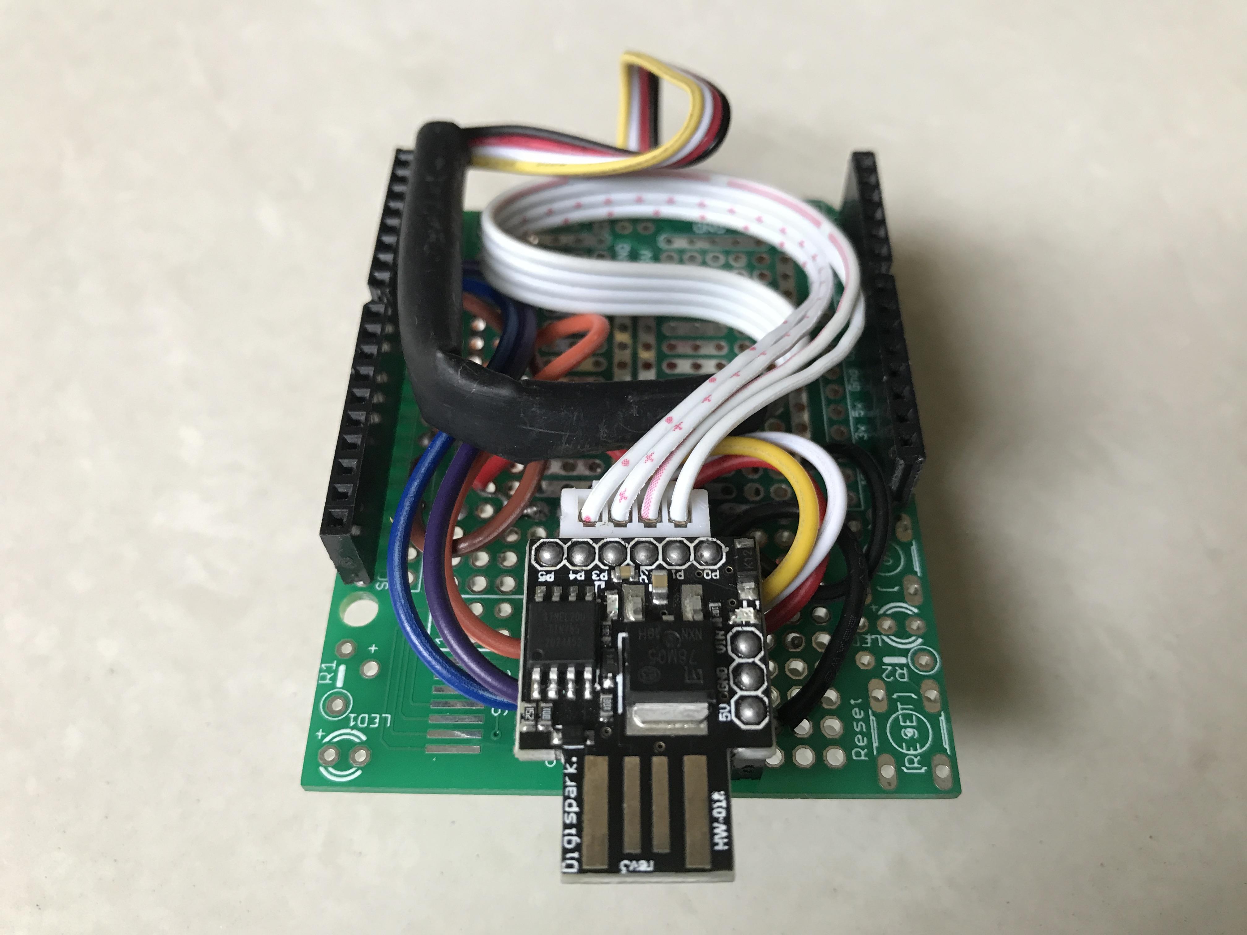 Plug DigiSpark Attiny85 and I2C connecter on their headers.