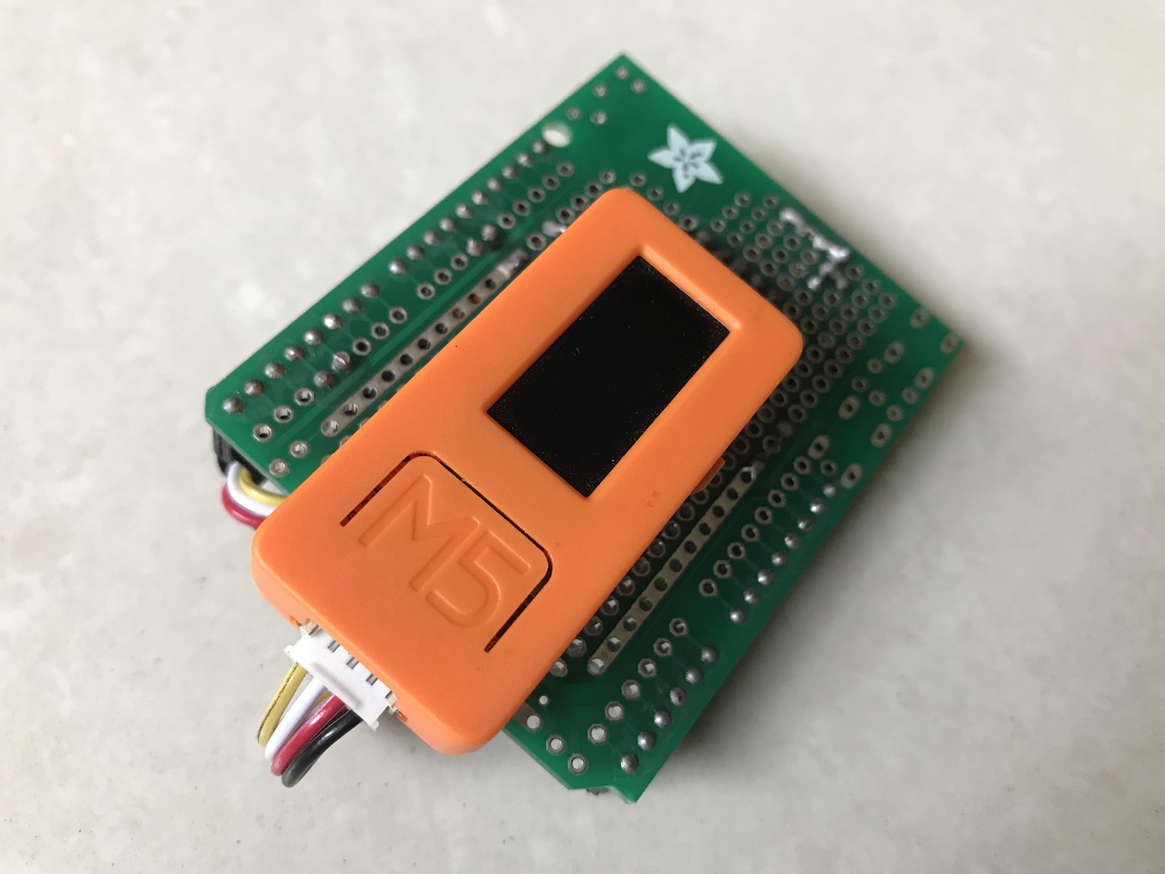 Plug M5StickC on its header and connect I2C Grove header.