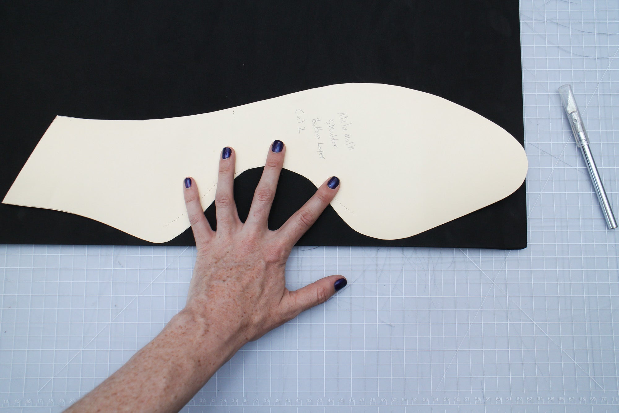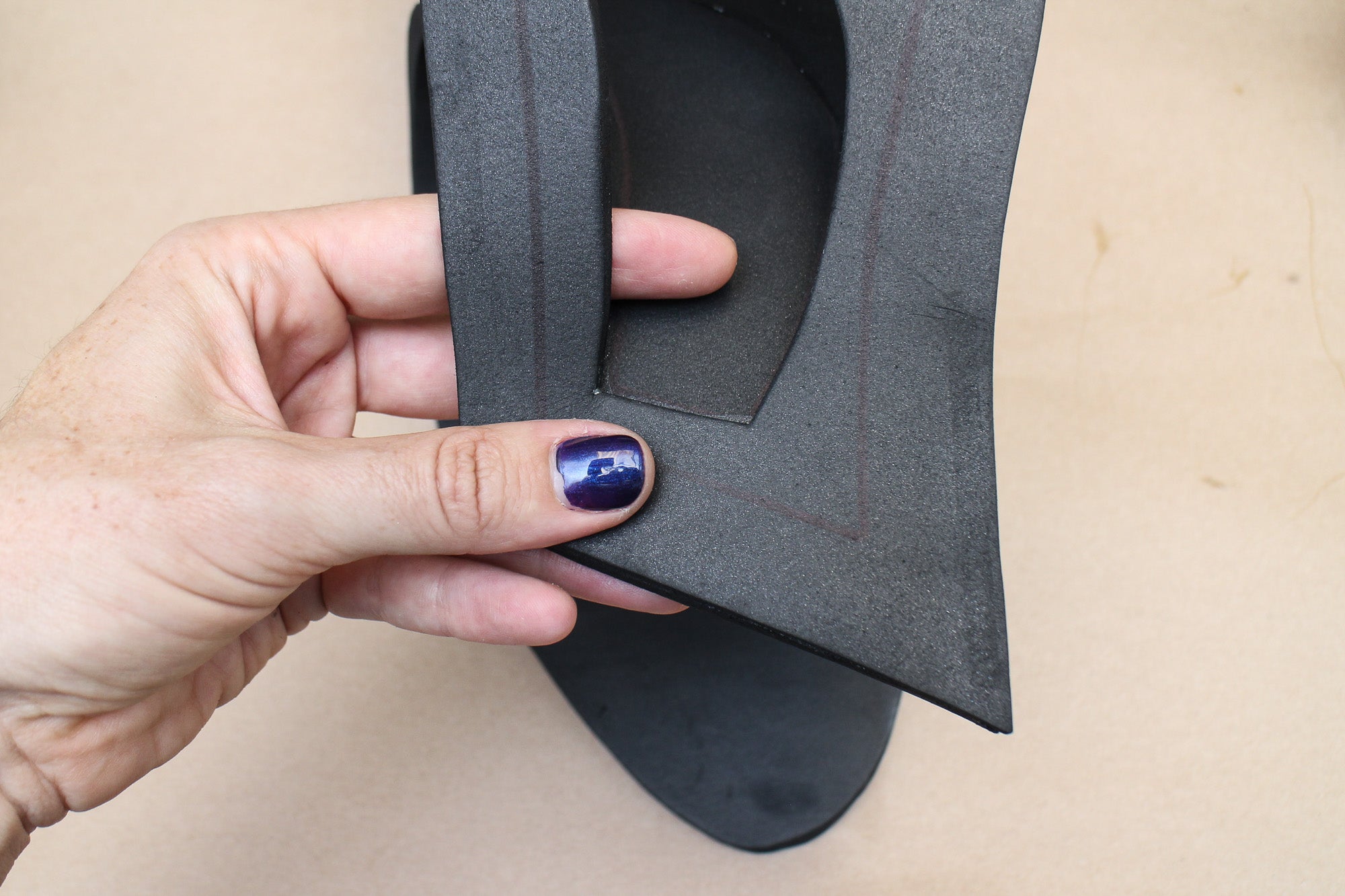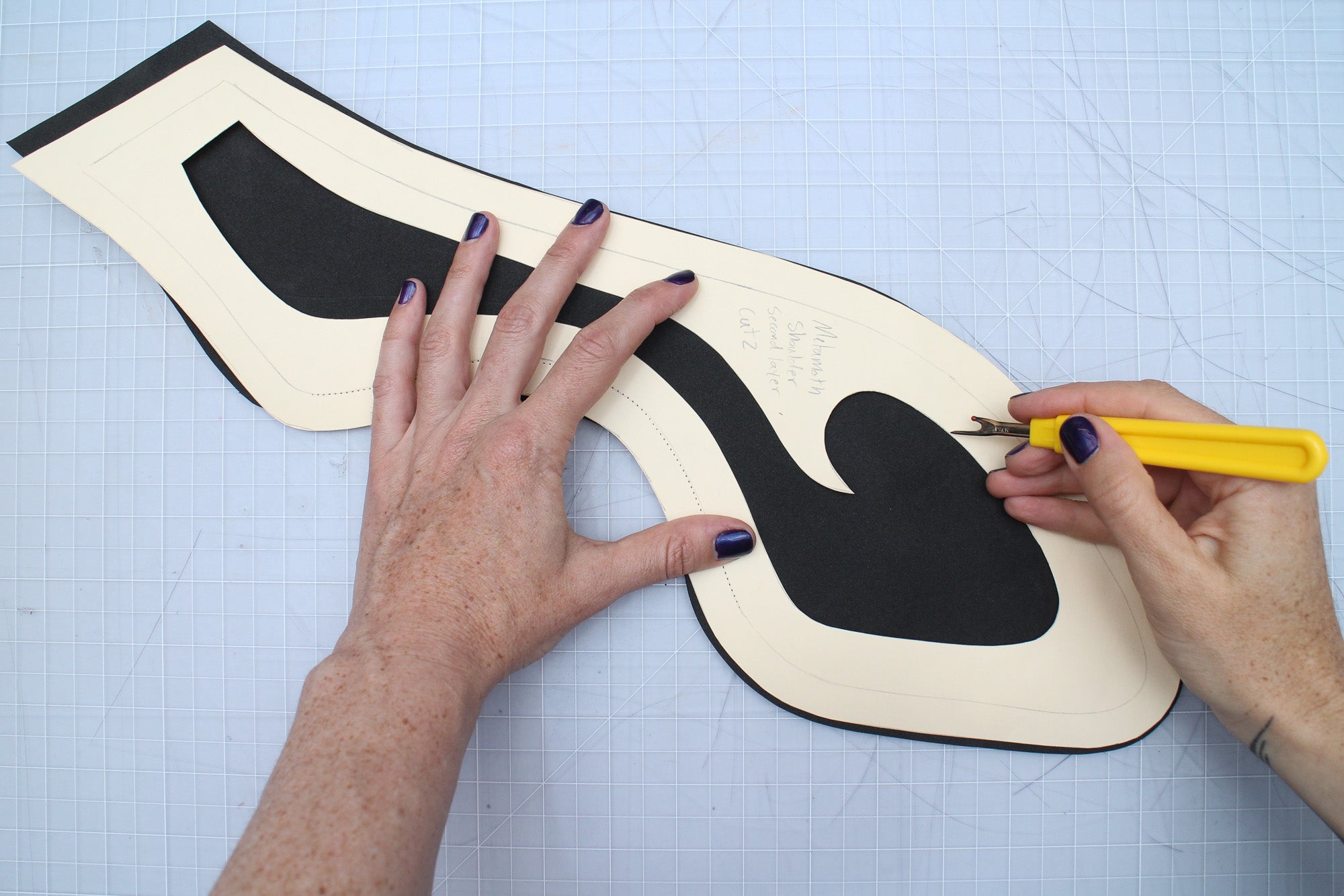 Trace the base pattern onto your foam with either a marker or a sharp object, like an awl or a seam ripper that makes a small groove in the foam.