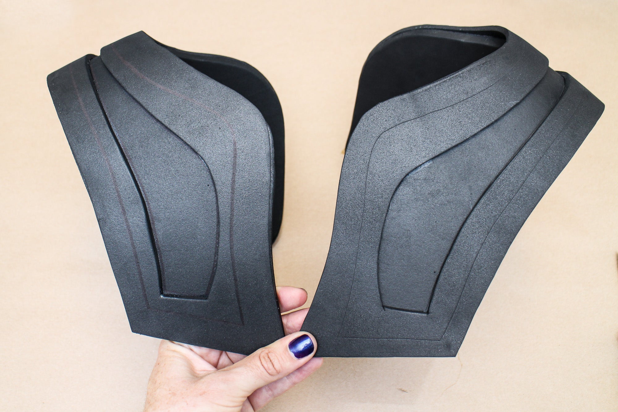 One of the most fun things about working with EVA foam is heat shaping. Adding just a little shape to some otherwise flat pieces gives your design a much more interesting, sculpted look. You can't bend foam, especially the thicker kinds, in super dramatic ways, but you can definitely create some nice bends and curves.