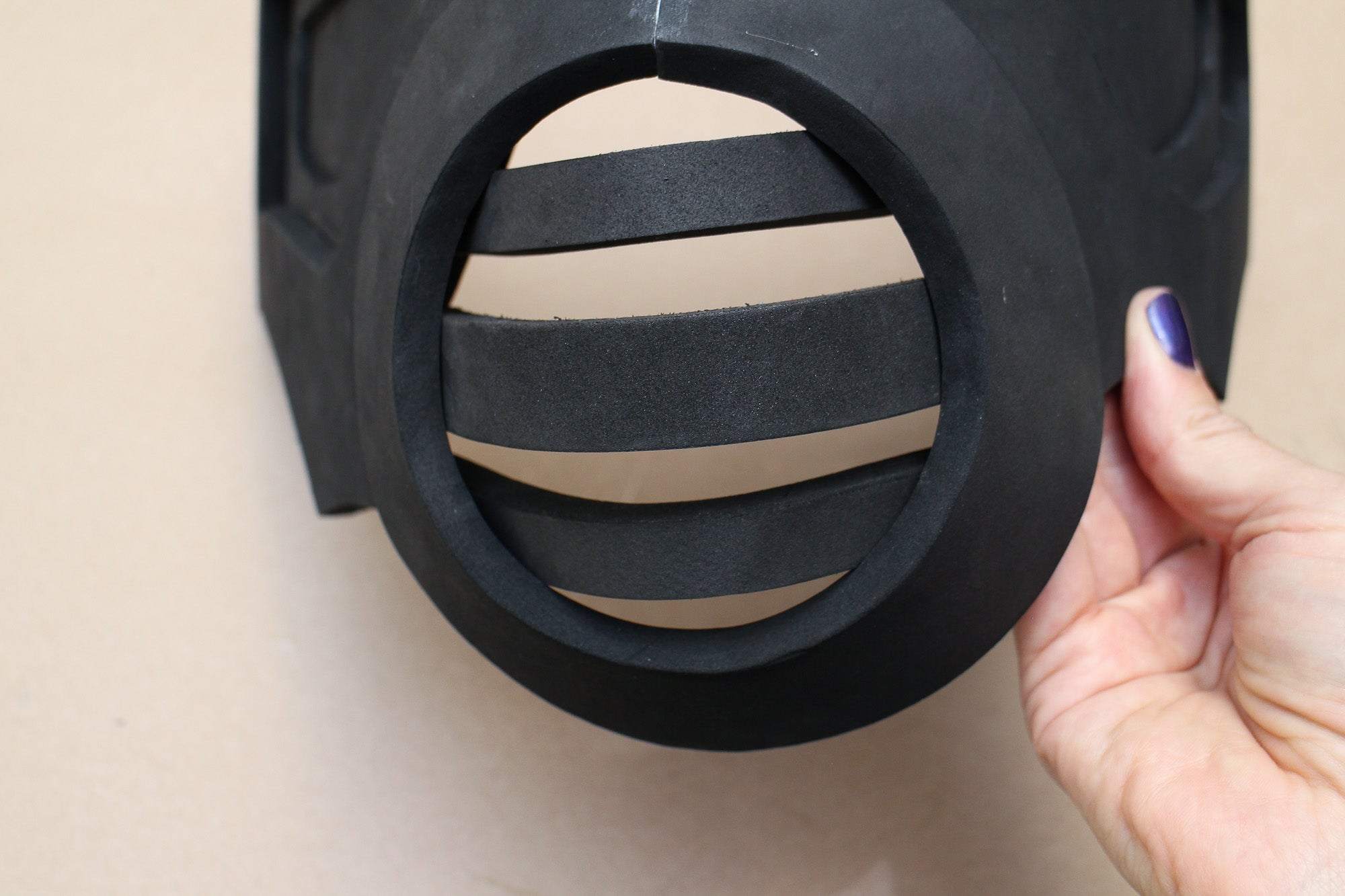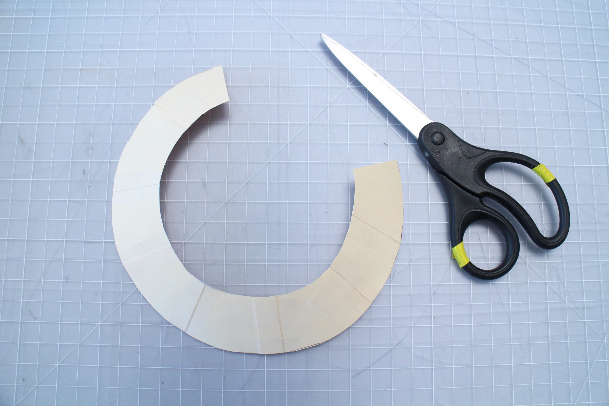 Now you're almost ready to start cutting out your foam pieces, however there is one complication. The tricky thing about creating paper patterns for foam is that unlike the paper, the foam has a thickness, so on a curved surface, a flat paper pattern can't be a fully accurate guide for cutting out your foam pieces after the first layer.