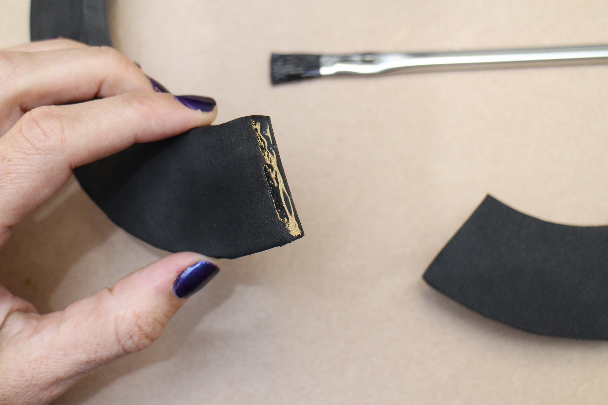 Before you stick the two pieces together you need to wait for the glue to soak in and dry so it no longer has this wet appearance. If you're working with large areas the glue on one side will often be dry enough by the time you've finished the second side. When it's ready it will look like this: