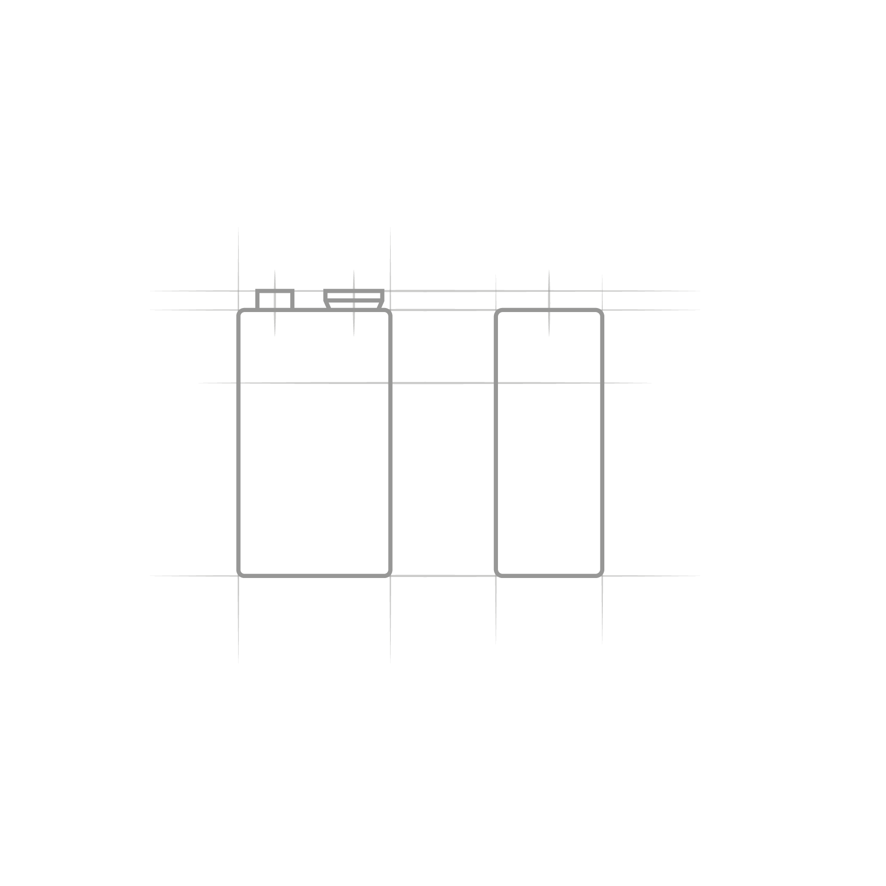 Next, add whatever other features can be seen from that point of view. For the battery, that would be the terminals on top. A couple of center lines will help keep the location of the terminals correct (these represent the centers of the terminals, not the rectangle).