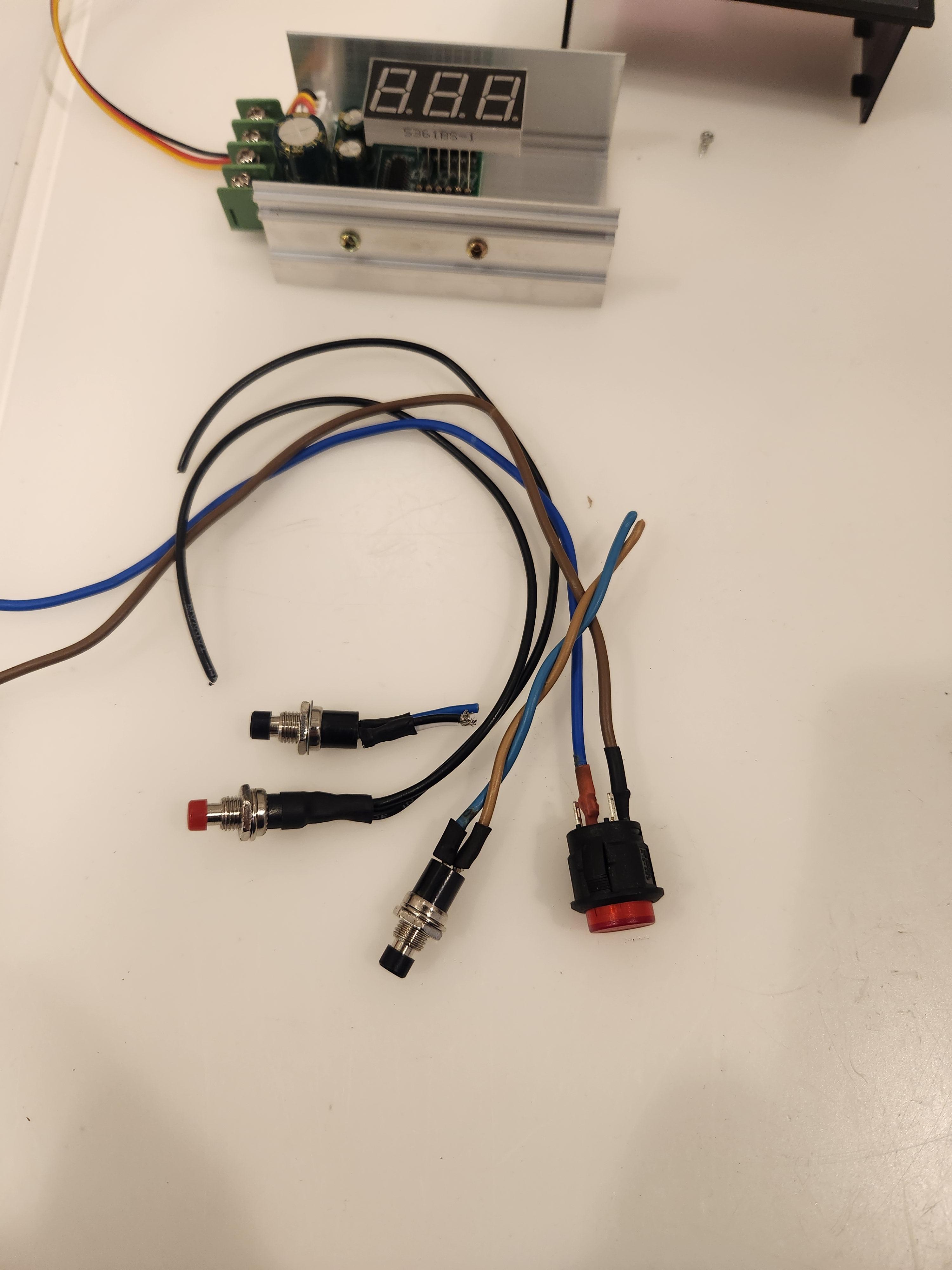 The switches and/or LEDs should already be mounted to the panel of the main electronics box. You can connect the terminals of these directly, or with a screw terminal block (I opted for a screw terminal block which was mounted on the bottom-left side of the electronics box when we constructed the electronics box some time ago).