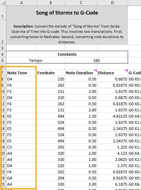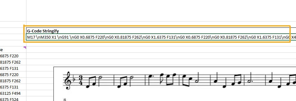 With support for G-code added to VS Code, jump over to the spreadsheet for the song you want to translate to G-code for your 3D printer to play. Copy the stringified G-code from cell F5.