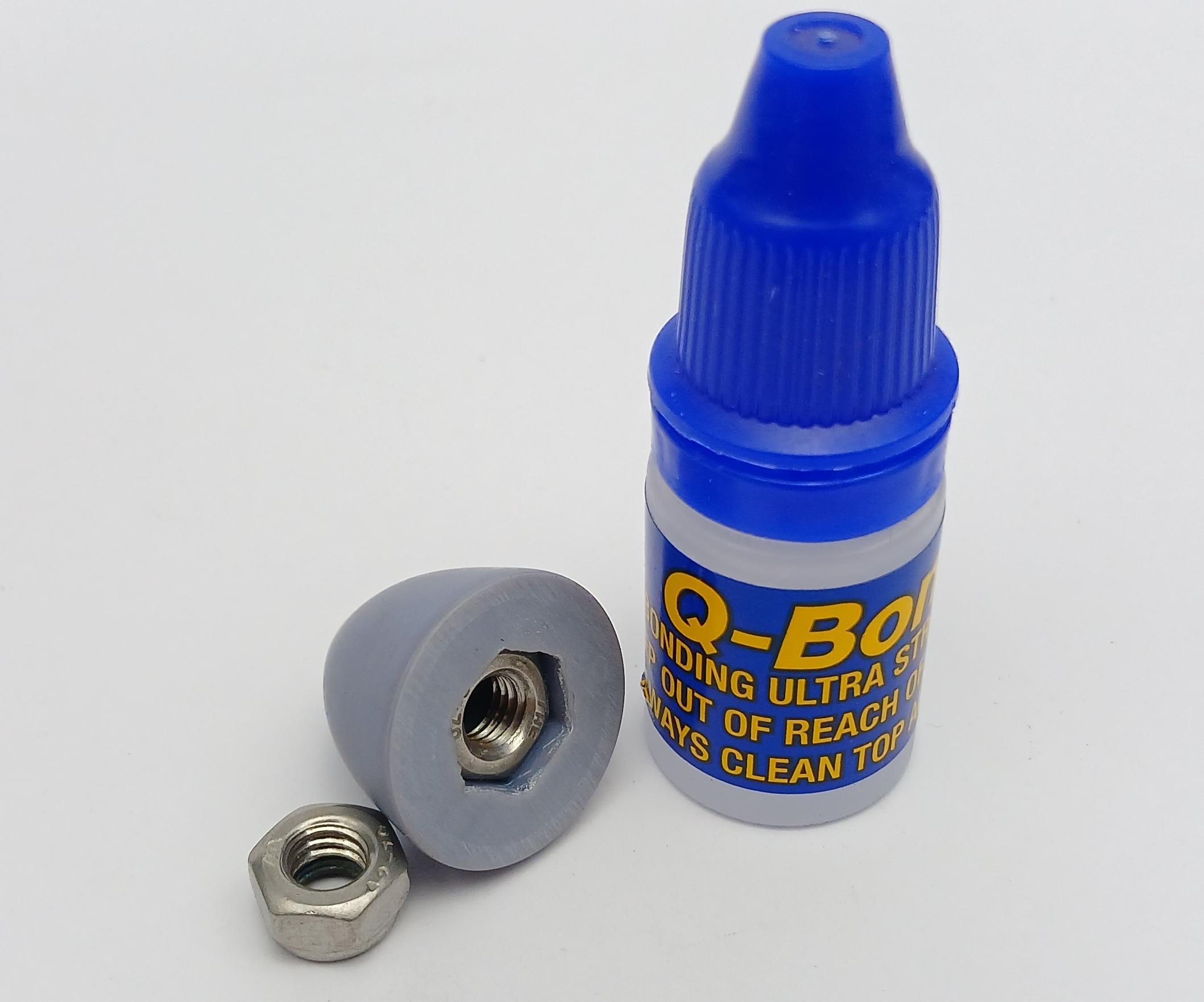 Using CA (super glue) I adhered a M6 nut into the printed cone, I do this before painting as you can now temporarily screw in a long M6 bolt to make sanding and painting easier.