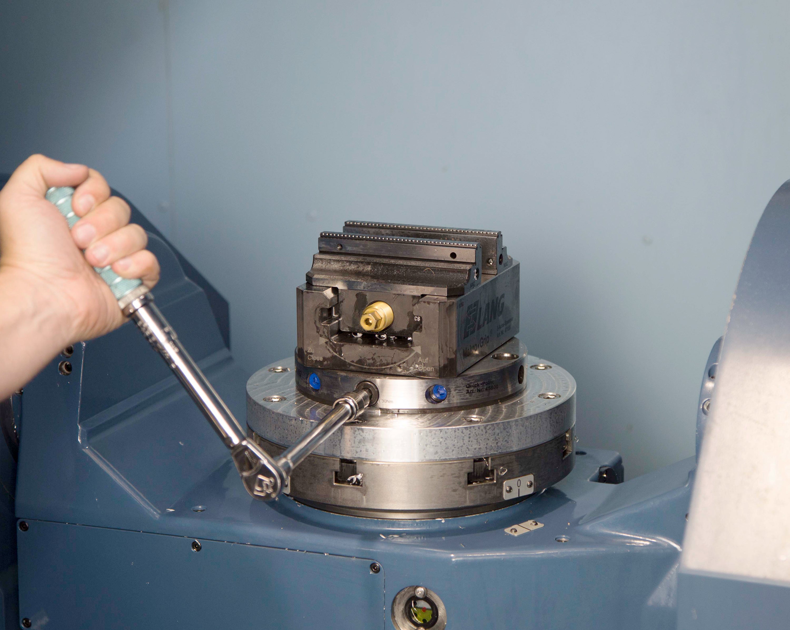Now that you've simulated and posted your G-code in CAMplete, it's time to move into the CNC shop. The subsequent steps in this lesson take place at the Matsuura 5-axis Mill. You'll learn how to install Lang vises and chucks and verify the Work Coordinate System, G54.